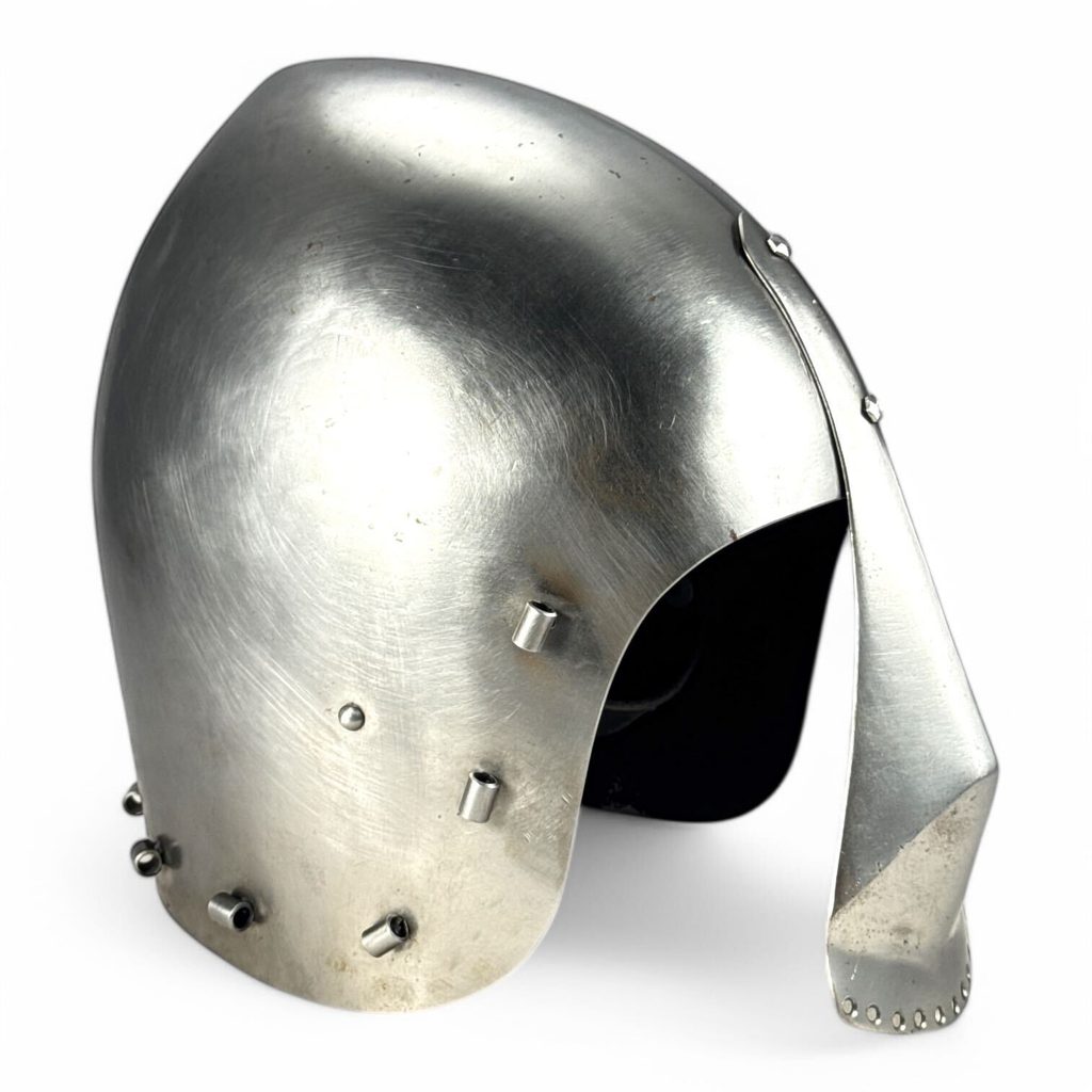 Středověká přilba. Síla materiálu: 1.5 mm. Pro obvod hlavy cca 55 cm. Vyrobeno v České republice.