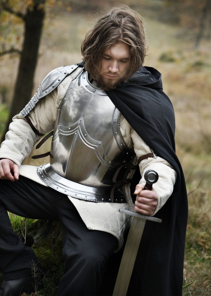 Součástí dodávky je pouze hrudní a zádový plát. Ostatní části zbroje zobrazené na fotografiích jsou k dispozici samostatně v našem online obchodě.