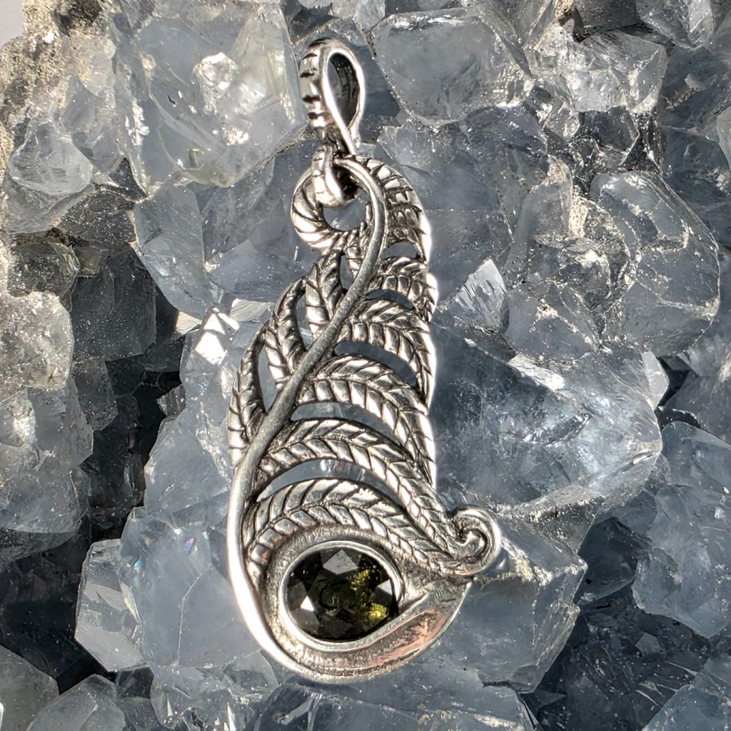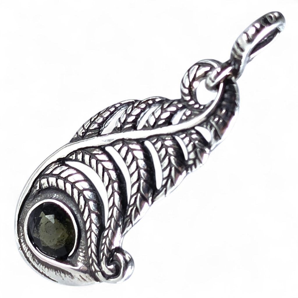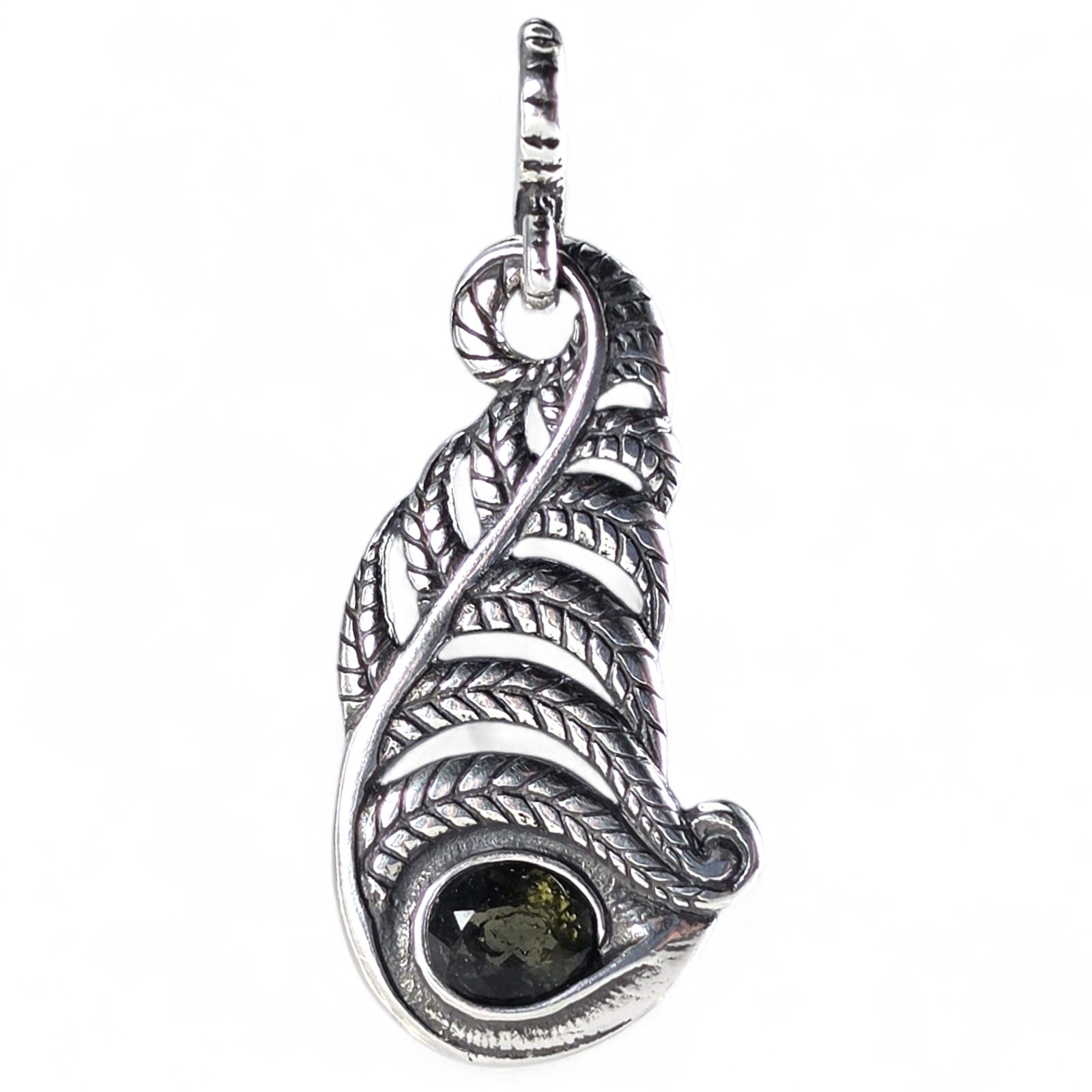 Stříbrný přívěsek - Kapradí, s broušeným vltavínem.