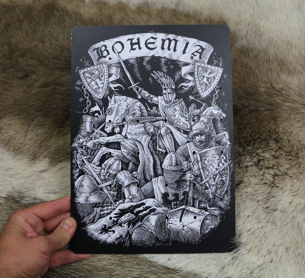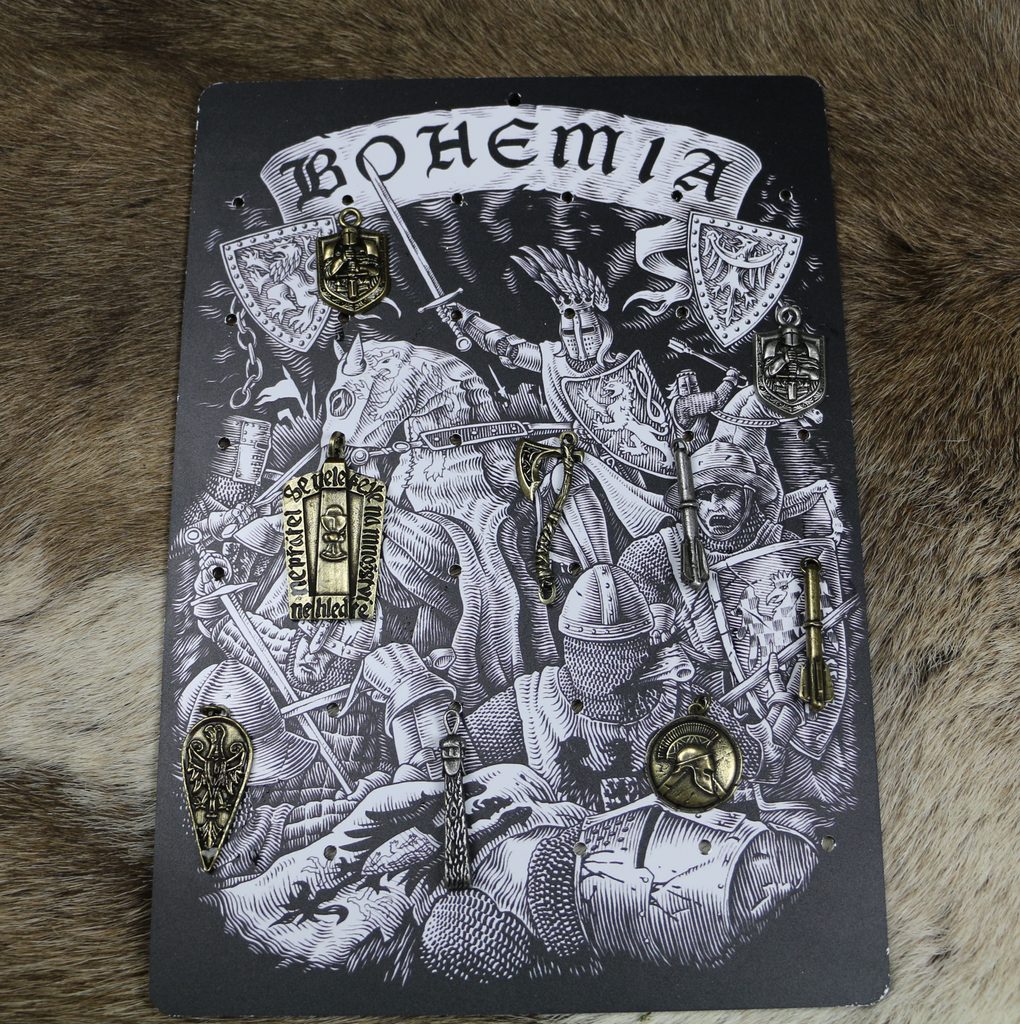 Na formátu A4 s pevným hliníkovým podkladem je vytištěn tématický motiv pro šperky k zavěšení (háčky či pomocí kůže)