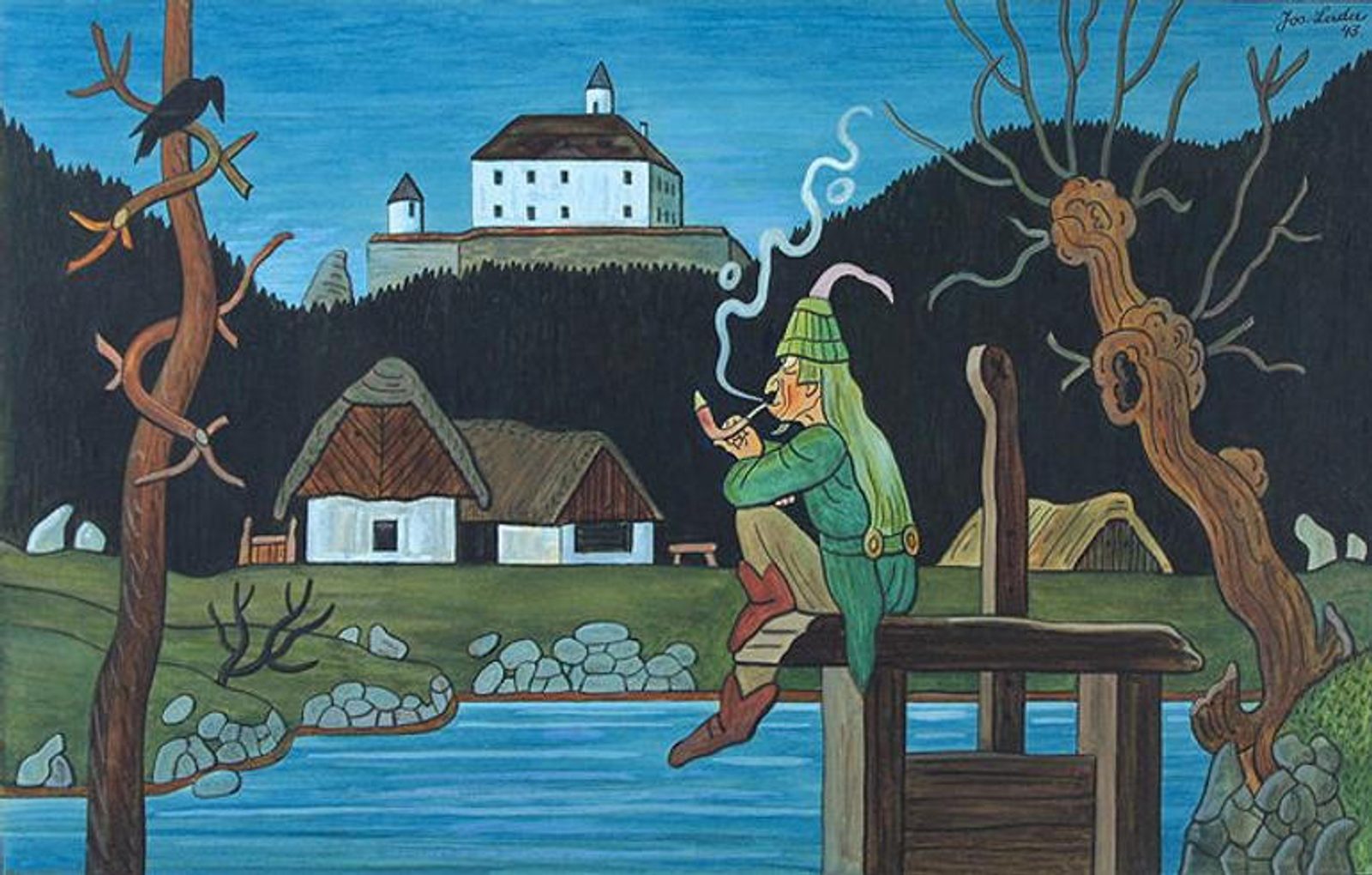 Josef Lada postavu vodníka měl velmi rád, k tomuto motivu se mnohokrát vracel (podle expertů, od konce 30.let, do roku 47 minimálně. Vidíme u něj typické rysy vodníka z českých pohádek: dlouhé vlasy, šosy, a osamělá vrba, na které rád posedává.