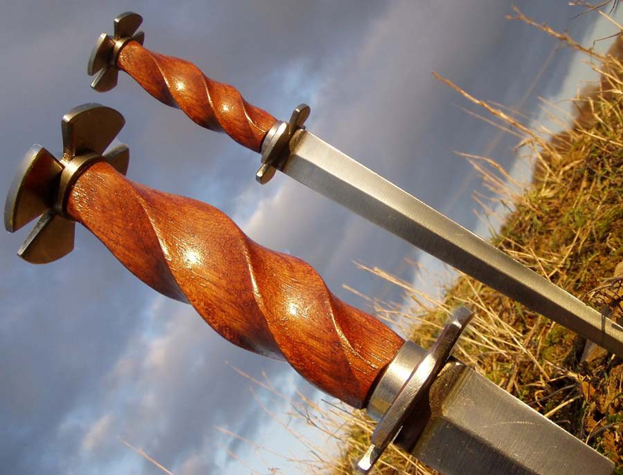 Celková délka těchto dýk se pohybovala mezi 35-60 cm, z toho na čepel připadala obvykle délka 30-50 cm. Zpracování a případné zdobení se odvíjelo od ekonomických možností a sociálního postavení vlastníka – od jednoduchého nezdobeného provedení až po exempláře zdobené rytím a zlacením. Oblíbenými objekty zdobení u těchto dýk byly záštitné terčíky, které mohly být rozličně prořezávané, a rukojeti ze dřeva či kosti, které se opět zdobily řezbou nebo rytím. U některých exemplářů se objevuje jako zdobný prvek různě vyřezávaný hřibovitý vrchlík na hlavici dýky (tj. na horním terčíku), který mohl být vyroben rovněž ze dřeva či kosti. Záštitný terčík u takové dýky mohl mít rovněž tzv. sendvičovou strukturu, což znamenalo, že mezi dvěma terčíky z kovu byl vložen terčík ze dřeva či kosti. Kromě toho existovaly ovšem i dýky v celokovovém provedení včetně konstrukce rukojeti.