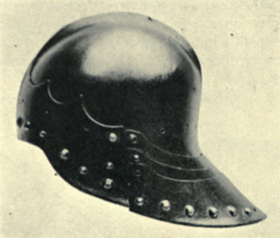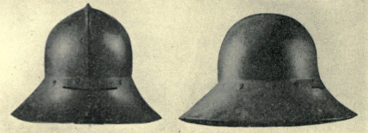 Německý šalíř vzhledově podobný železnému klobouku, c. 1460. LAKING, Guy Francis: A record of European armour and arms through seven centuries. Vol. 2. London G. Bell and Sons, 1920, s. 4.
