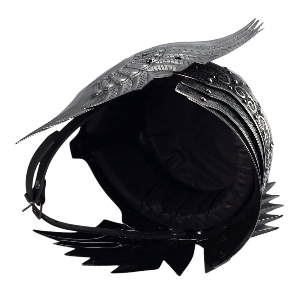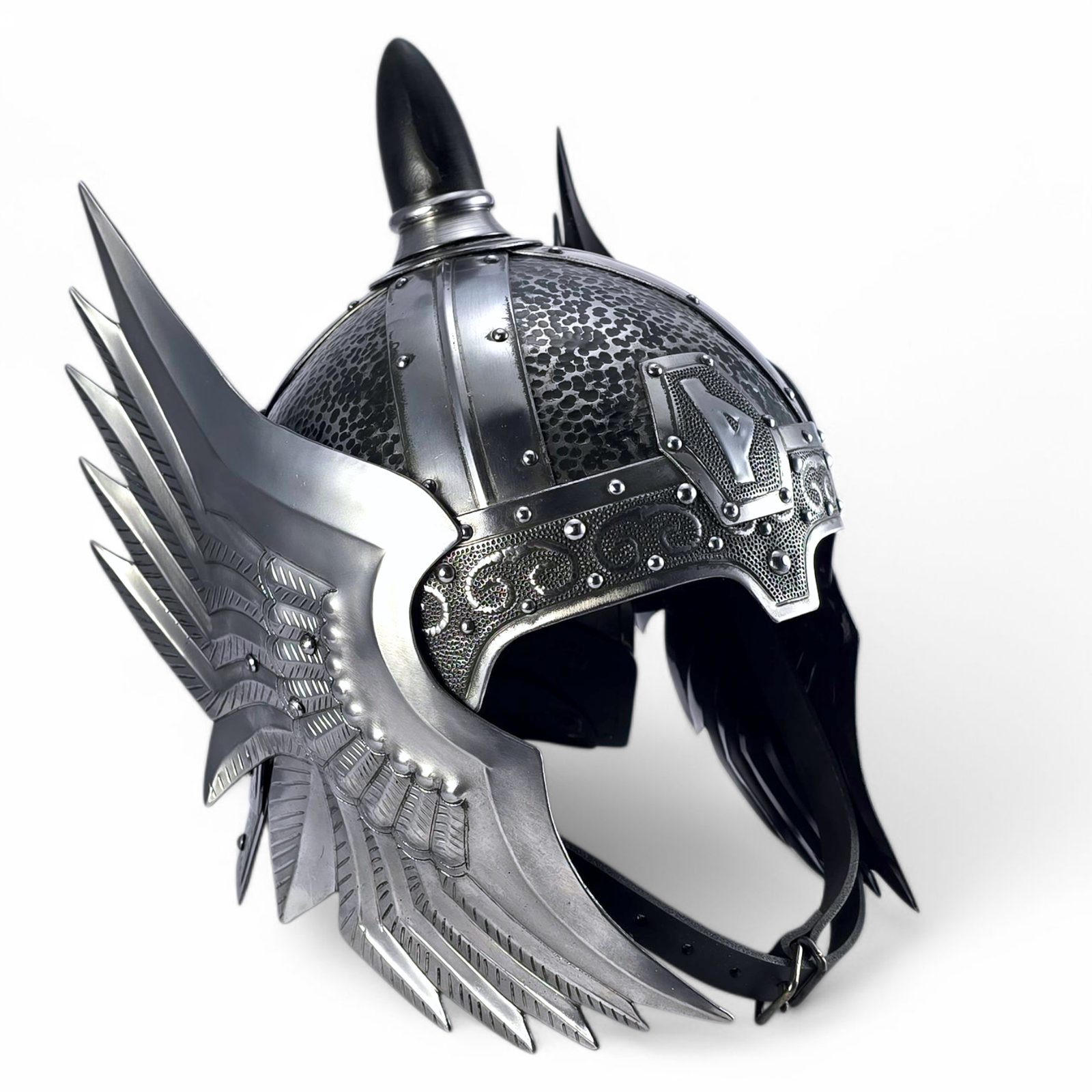 Ručně vyráběná fantasy přilba Thor s křídly. Do nejmenšího detailu ručně zdobená. Špičková práce z české zbrojířské dílny, která vyráběla pro nespočet filmů a seriálů včetně slavného Gladiatora. Autorský návrh.