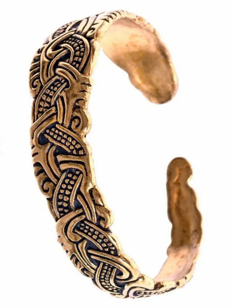 Vikingský bronzový náramek ve stylu Mammen, vytvořen po vzoru „Thorleifova kříže“ z Isle of Man.