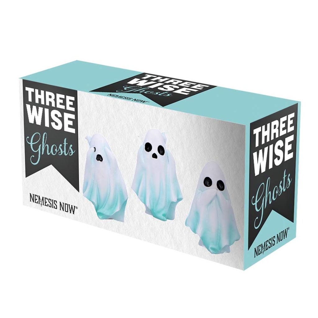 Roztomilá trojice duchů v pozicích „neslyším nic zlého, nevidím nic zlého, nemluvím nic zlého“.