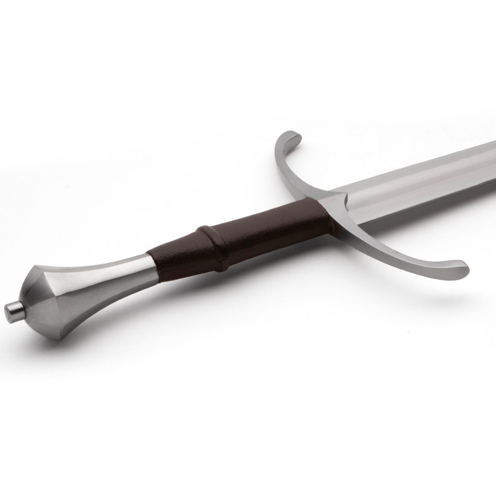 Čepel se zužuje do impozantního hrotu a je většinu své délky kanelovaná, což poskytuje větší rychlost. Pěšky se mohla používat obouruč, zatímco na koni její dokonalá vyváženost a hmotnost stále umožňovaly efektivní údery jednou rukou. Je skutečným potěšením tento meč třímat. Dlouhý a elegantní jílec a dřevěná a kožená rukojeť se dokonale doplňují s výrazně zahnutou záštitou. Flexibilní a dobře kalený.
