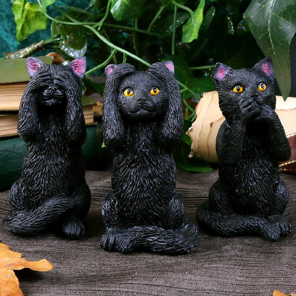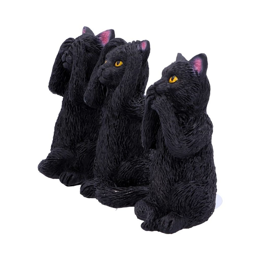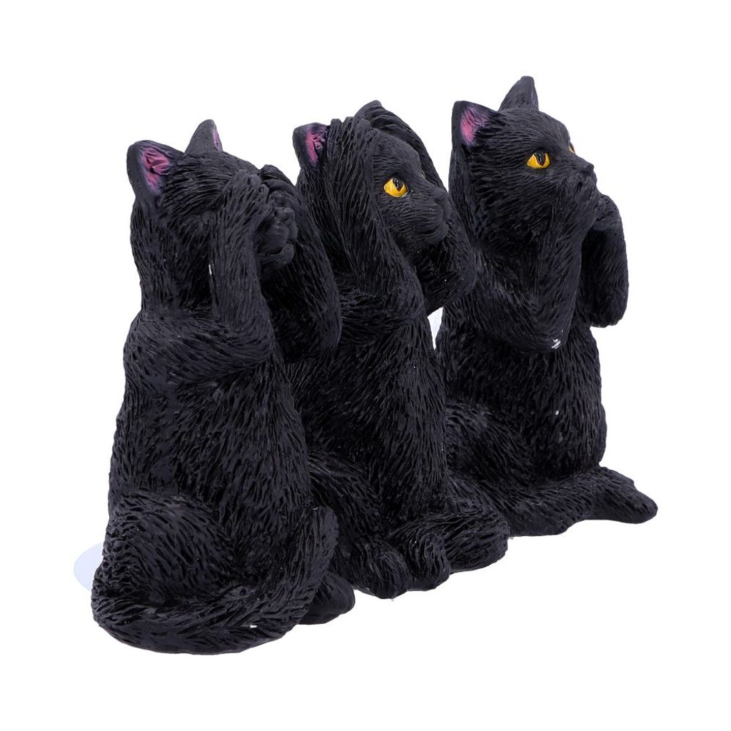 Od alternativních mistrů jsou nyní tyto okouzlující kočky odlévány do vysoce kvalitní pryskyřice a poté jsou pečlivě ručně malovány. Sedí vedle sebe a tyto tři moudré kočičky vzhlíží rozkošnýma očima. Jeden si přitiskne tlapy k ústům, jeden si zacpe uši a jeden si zakryje oči a bez ohledu na to se na něj podívá. Tato rozkošná zvířata jsou dokonalou ilustrací Konfuciovy slavné zásady: „Nevidět zlo, neslyšet zlo, nemluvit zlo“ a jsou dokonalým dárkem pro milovníka koček ve vašem životě.