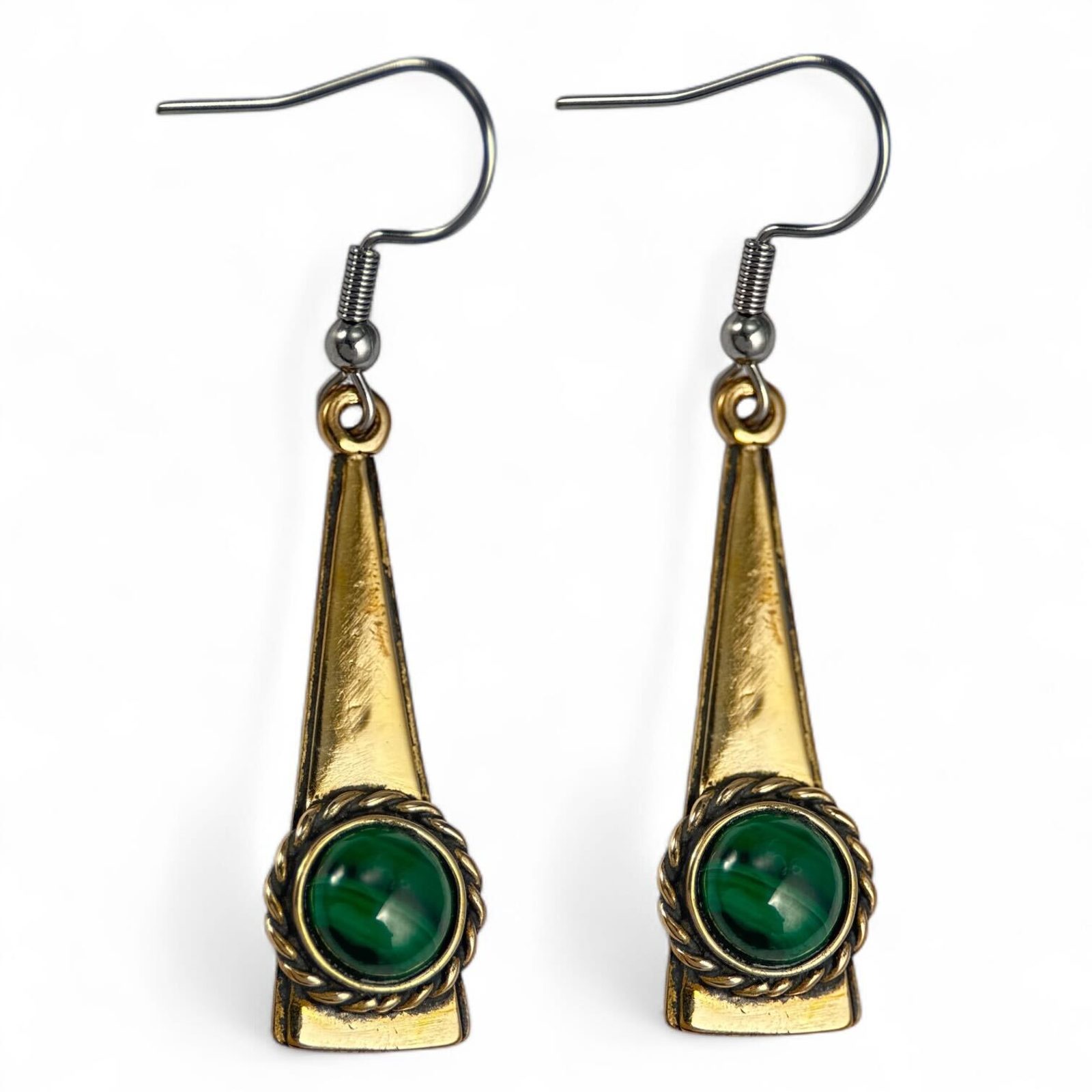 TRIANGLE, náušnice, bronz, malachit