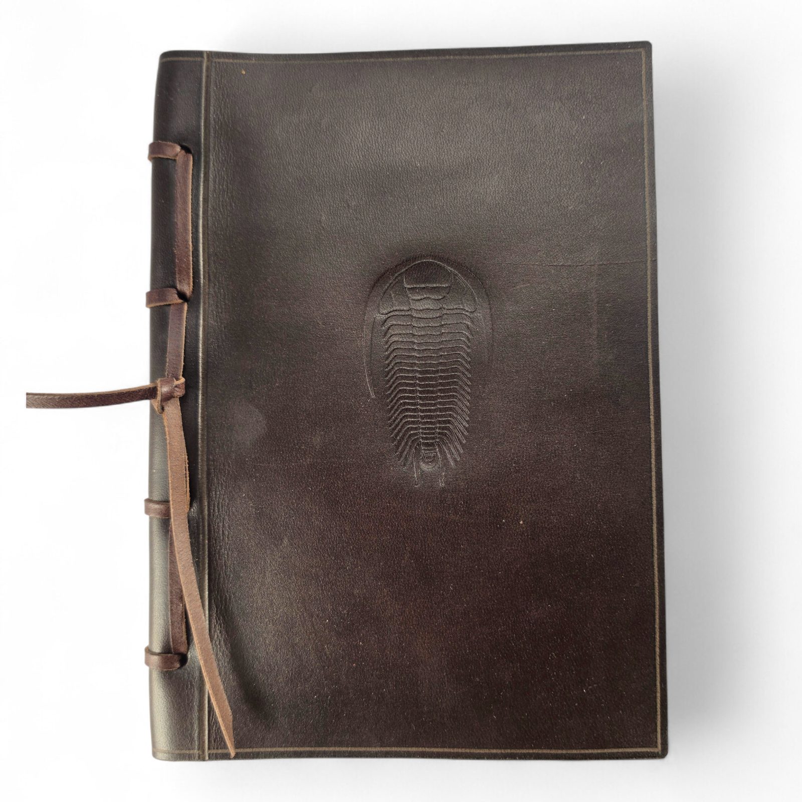 Uprostřed koženého obalu z kvalitní kůže je vytlačen trilobit.