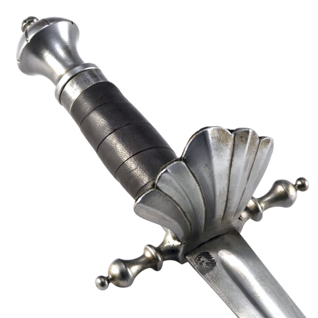 Renesanční dýka, čepel je vyrobena ze zakalené pérové oceli 54SiCr6 (ČSN 14 260). Čepel je tupá, špička do ostra. Pro případ použití při rekonstrukci historického šermu Vám špičku čepele kvůli bezpečnosti můžeme zaoblit.