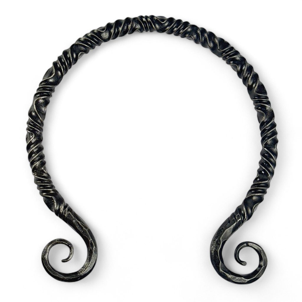 Torques, šperk vládců, reků, druidů, ale i Bohů starověku a raného středověku. Nyní se tímto šperkem můžete honosit i Vy. Šperk je ve výhni kovaný, černěný dubovou kůrou a lakem ošetřen proti korozi.
