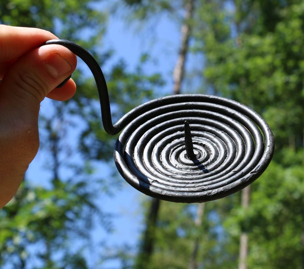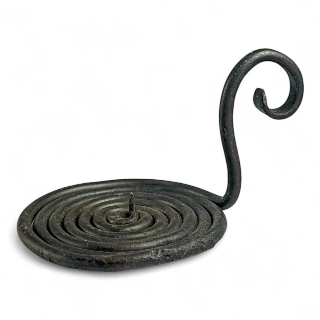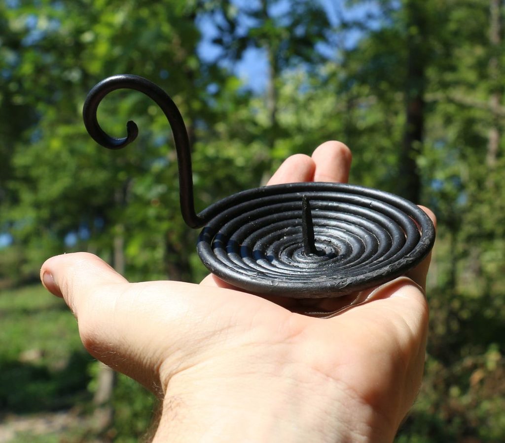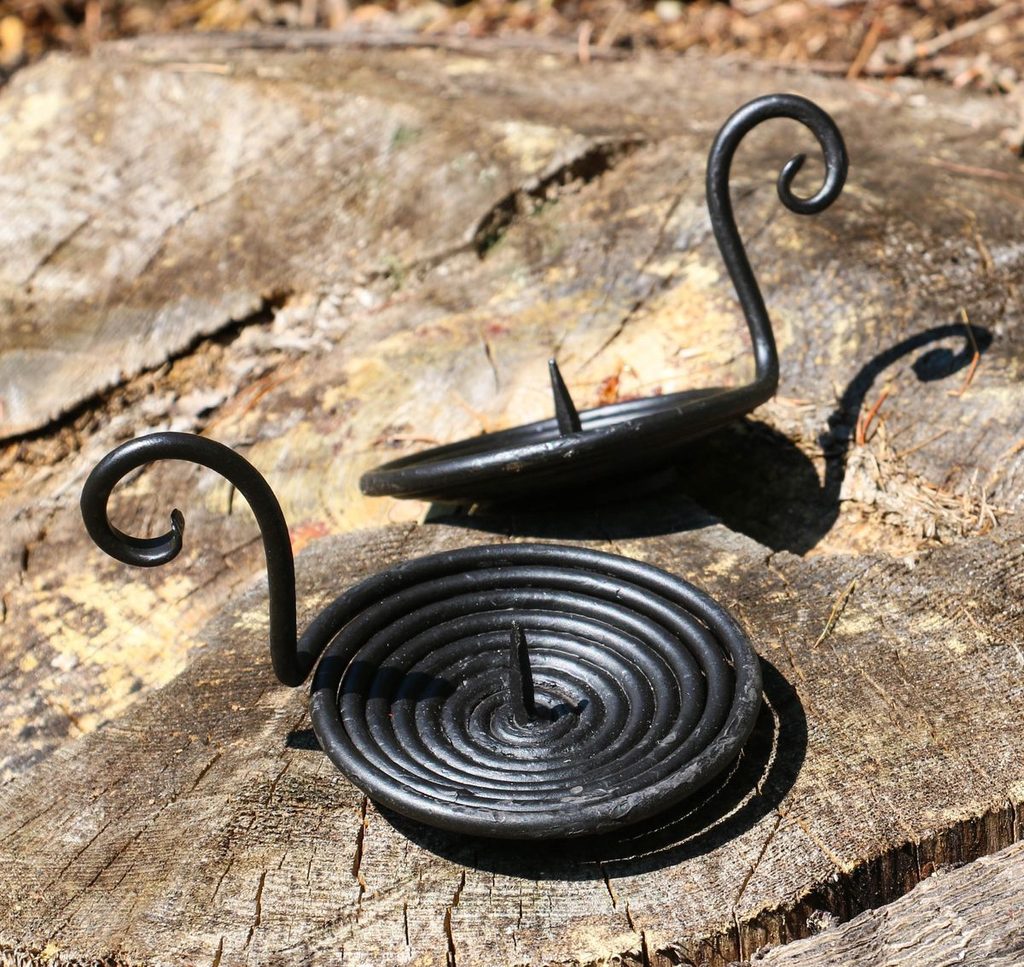 Kovaný svícen. Vhodné příslušenství k Vašemu středověkému táborovému vybavení. Podstava: 9 cm v průměru. Výška: 8 cm.