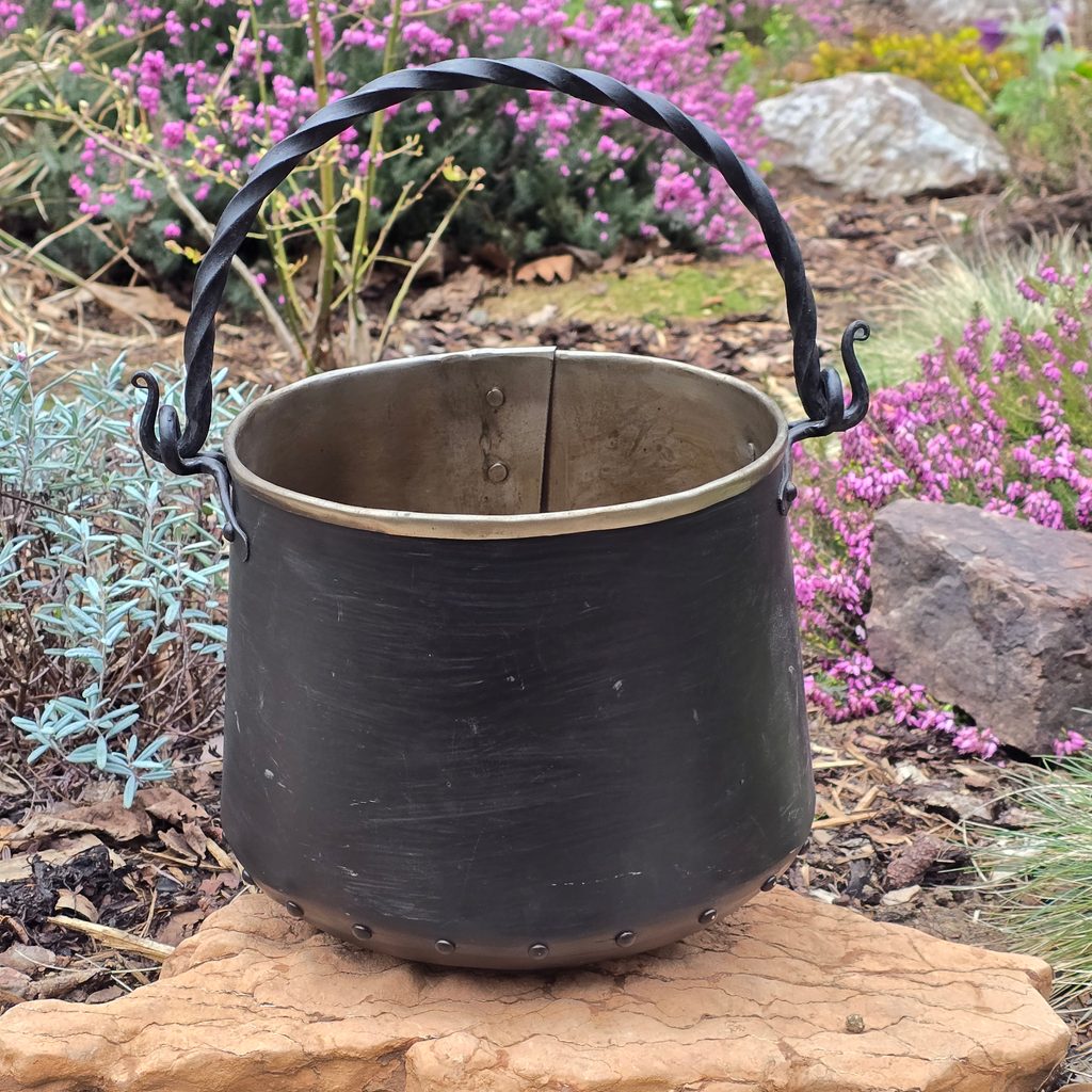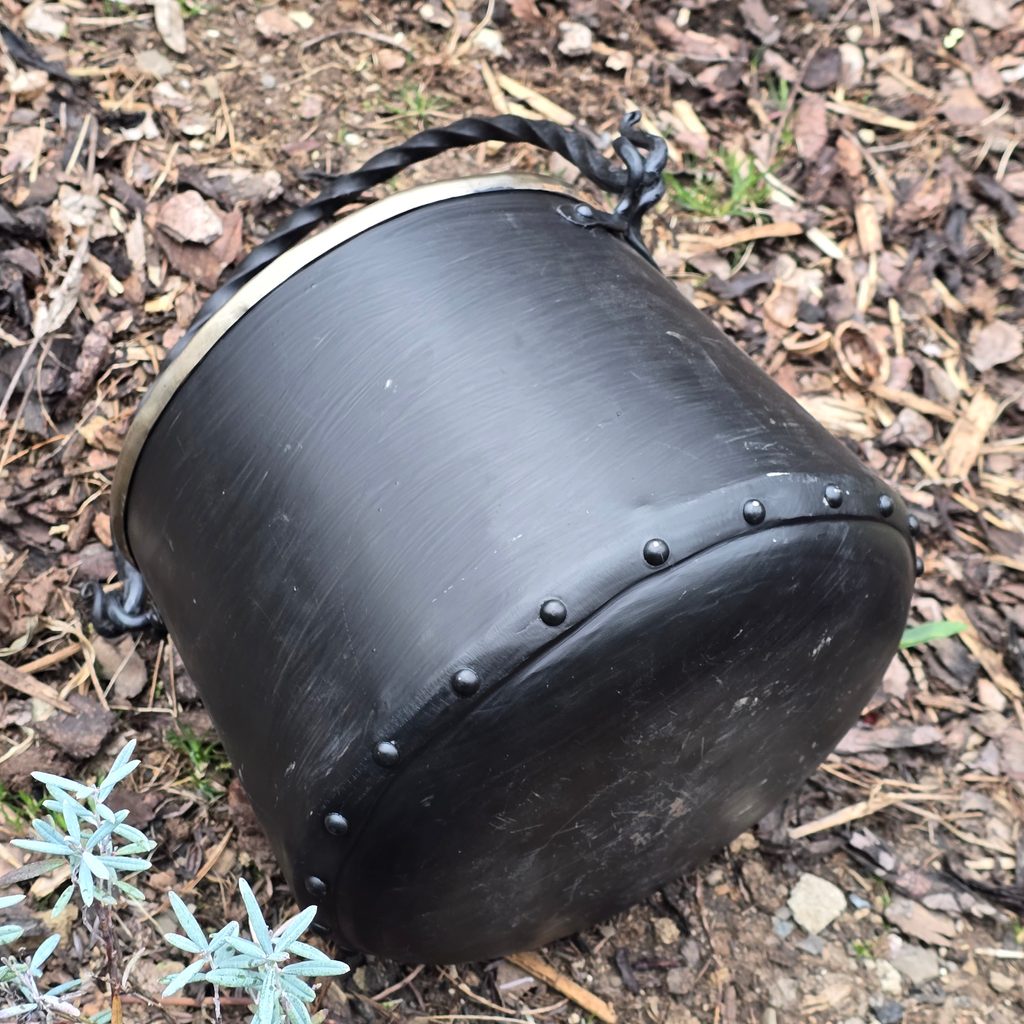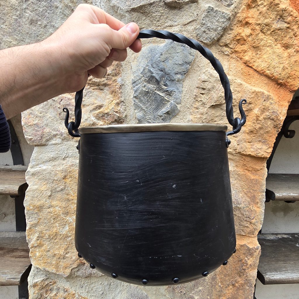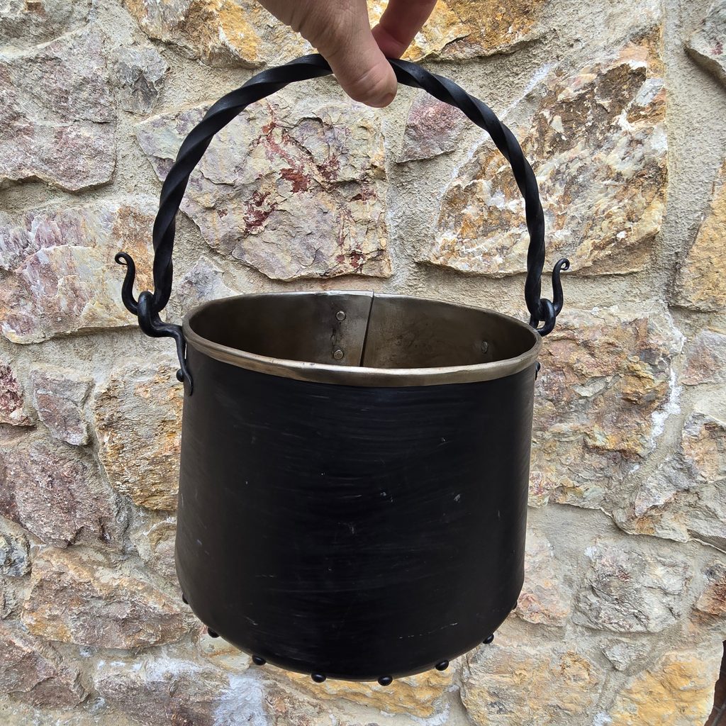 Ručně vyráběný železný kotlík. Objem: 5 L. Udržujte jej v čistotě a průběžně aplikujte rostlinný olej, který výrazným způsoben sníží korozi.