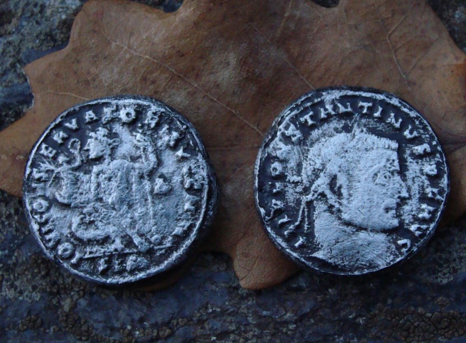 CONSTINVS (306 - 337), replika římské mince. Odlito z cínu, opatinováno. Velikost cca 2,2 cm.