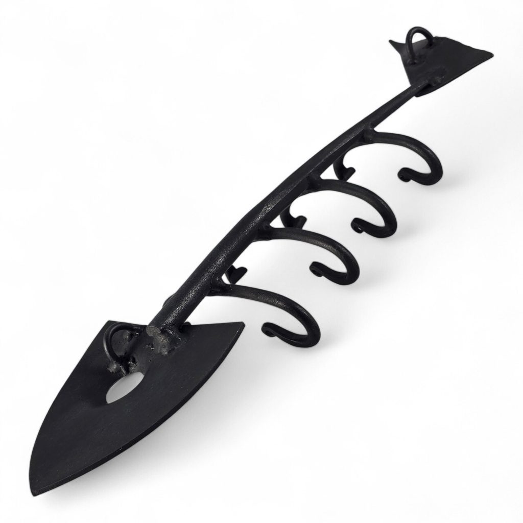 Tento hravý věšák ve tvaru rybí kosti vnese do vašeho domova špetku humoru i poctivého řemesla. Každý kus vzniká pod rukama českého kováře, kde oheň, kladivo a zkušenost dávají kovu tvar. Ručně kovaná struktura a tradiční kovářská černá barva zaručují odolnost i starý vzhled. Pevné háčky spolehlivě unesou klíče, utěrky či drobnosti a přitom zůstanou stylovým detailem. Potěší oko, vydrží roky a připomene sílu tradičního českého kovářského umění. Je kompaktní, pevný a skutečně originální doplněk domova navždy váš.