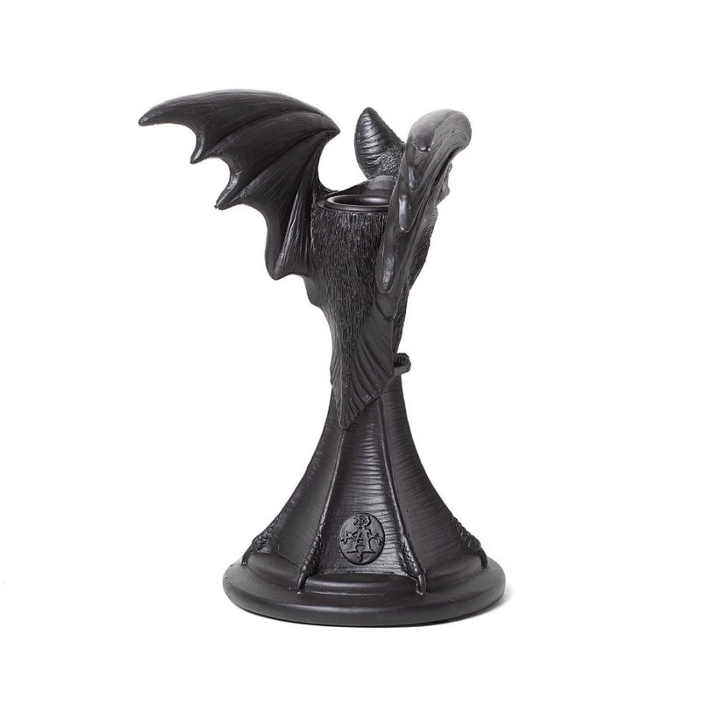 Krásně tvarovaný svícen ve tvaru netopýra, ručně dokončený z prvotřídní černé pryskyřice.