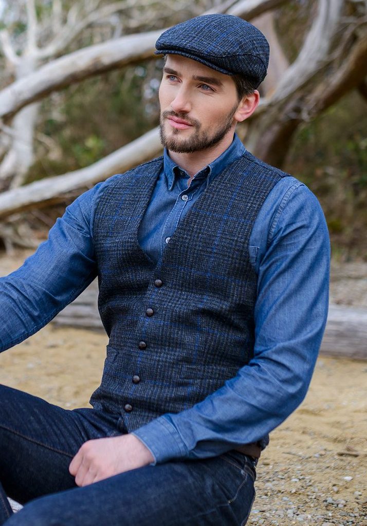 Vesta pánská Tweed, modrá, Irsko 434-1