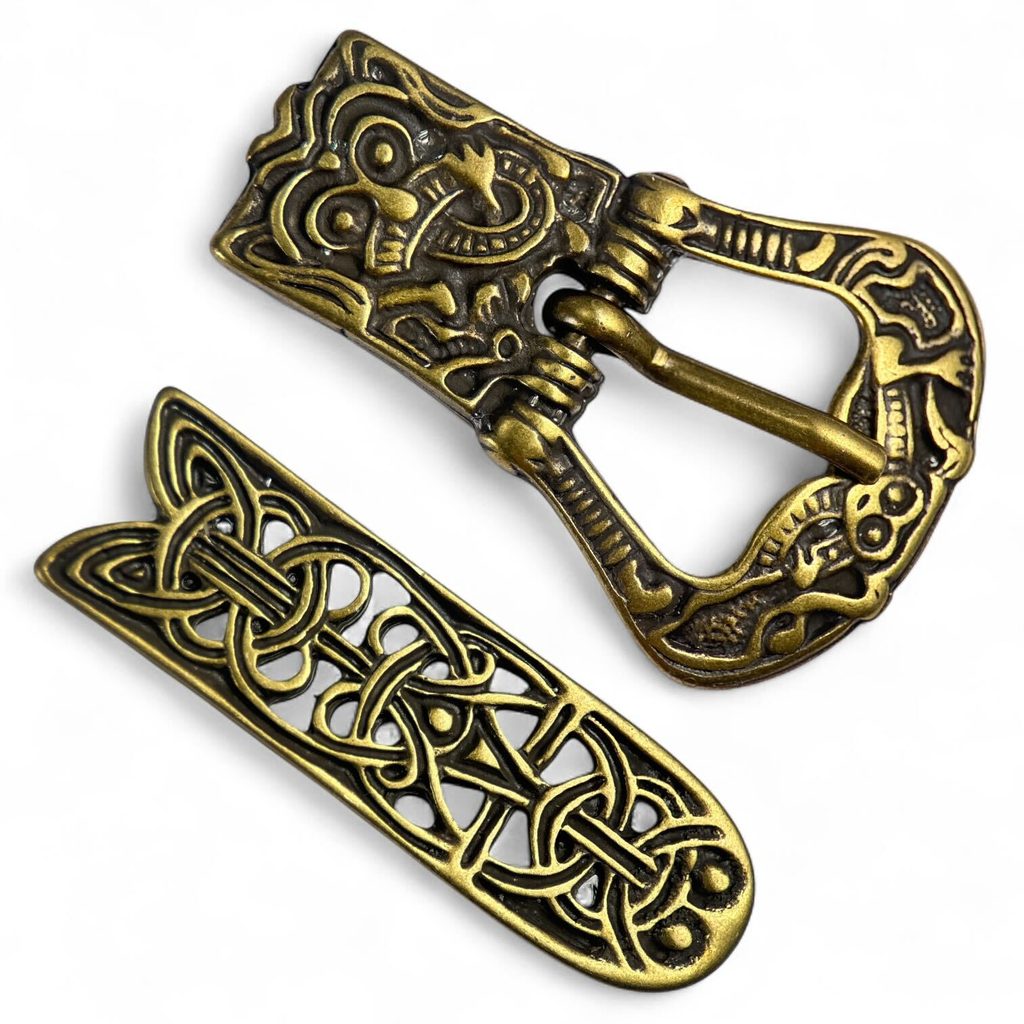 Dvoudílná sada pro vikinský opasek – spona a koncovka řemenu.