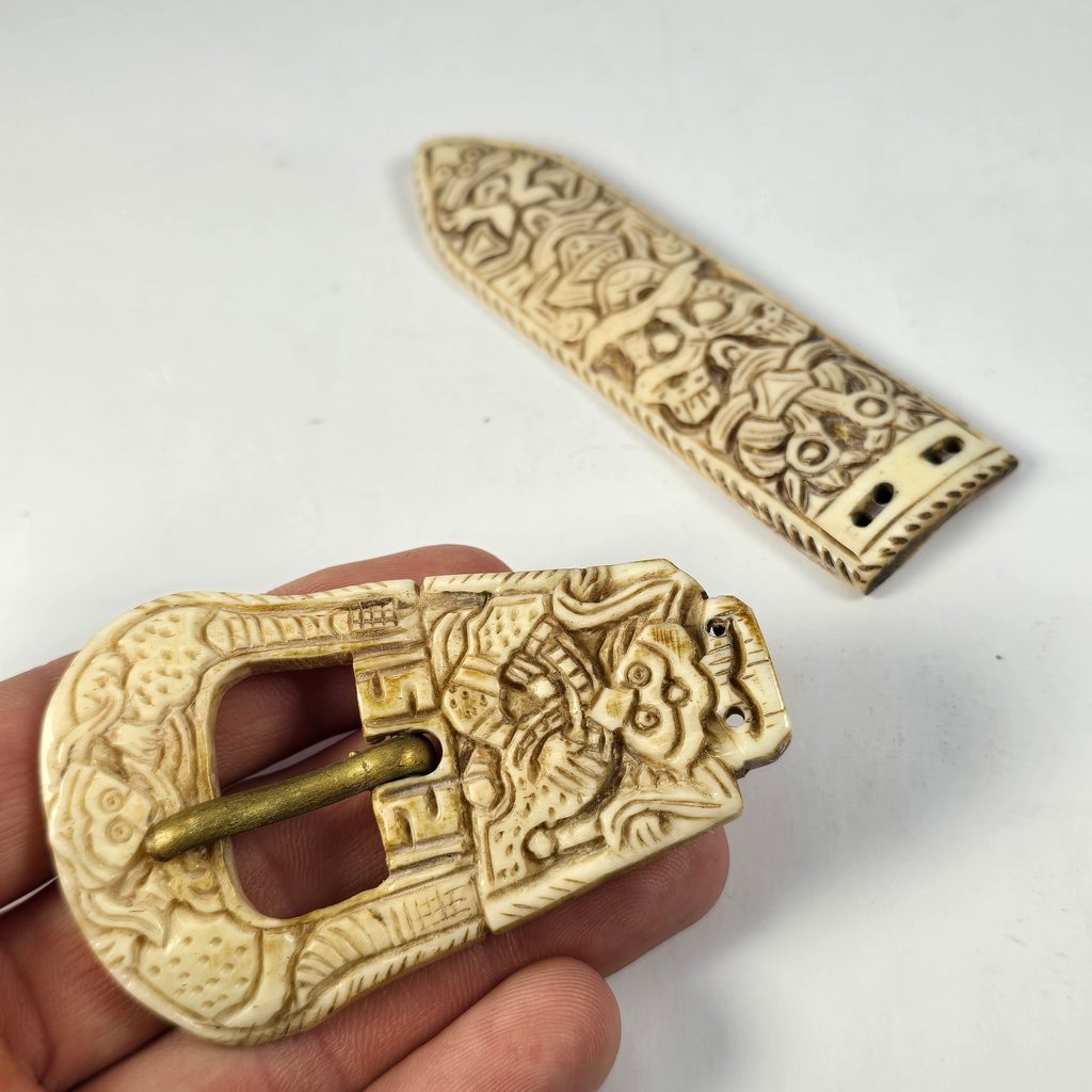 Replika vikingské opaskové přezky a nákončí na opasek v Borre stylu. Tato detailně zpracovaná replika vikingské přezky vznikla podle historického vzoru z vikingského města Birka a reprezentuje tzv. Borre styl, datovaný do 9. století.