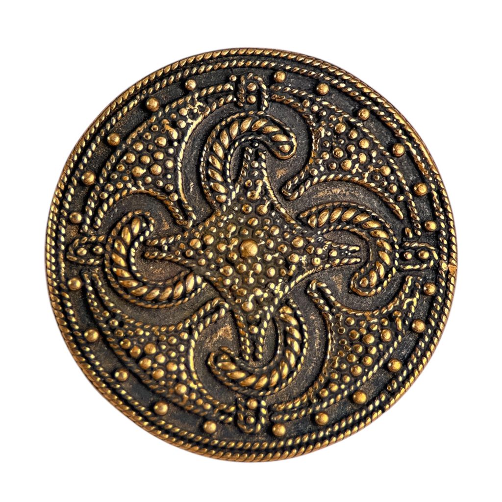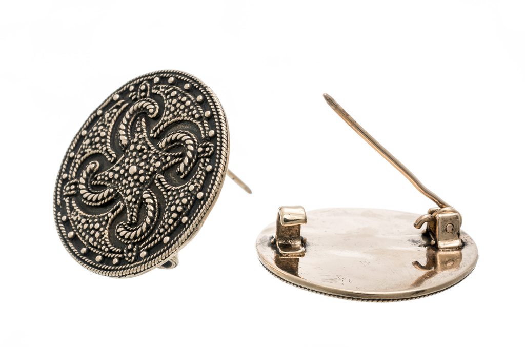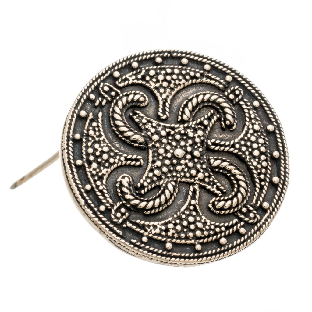 Unikátní replika bronzové vikingské brože. K vytvoření hlavního modelu pro tuto brož jsme použili techniky filigránu a granulace.