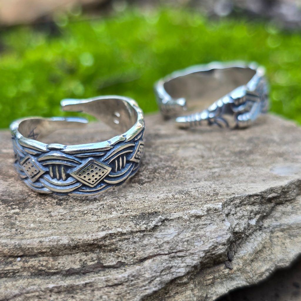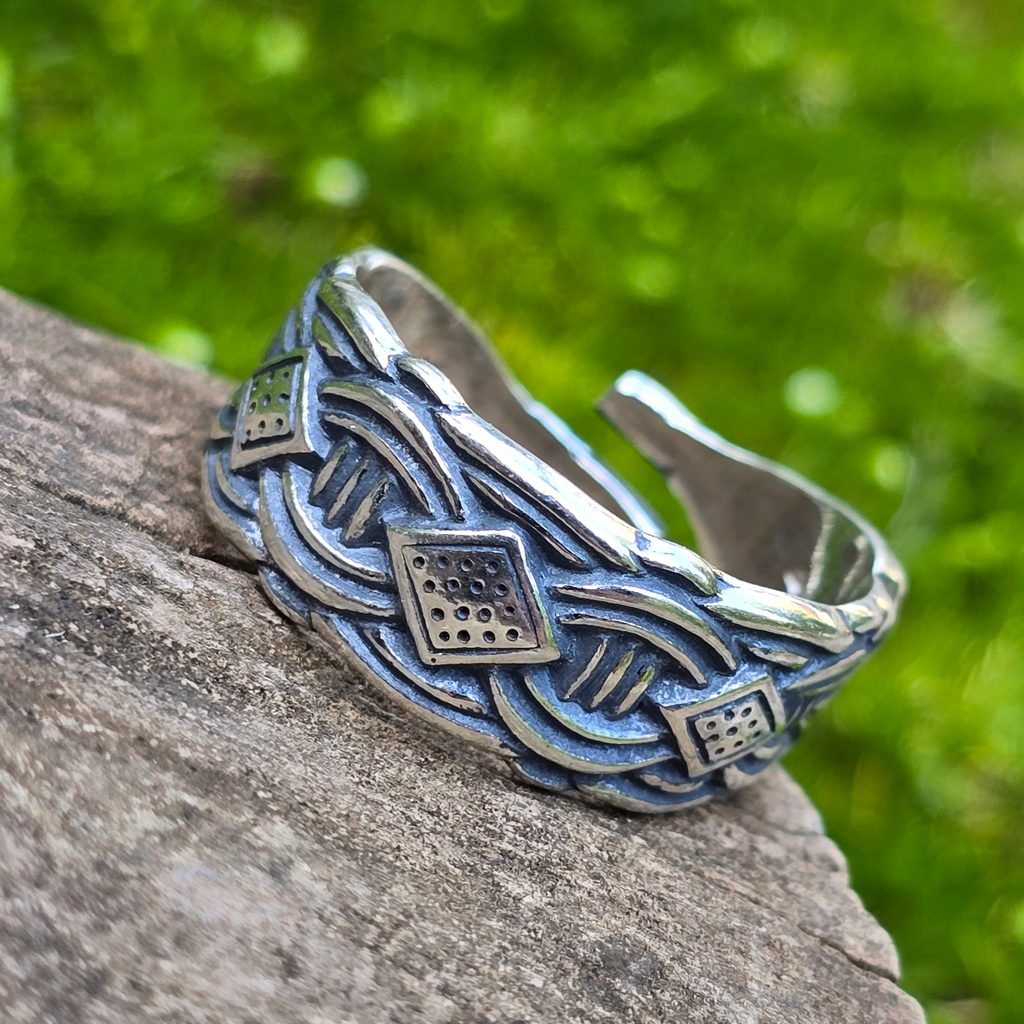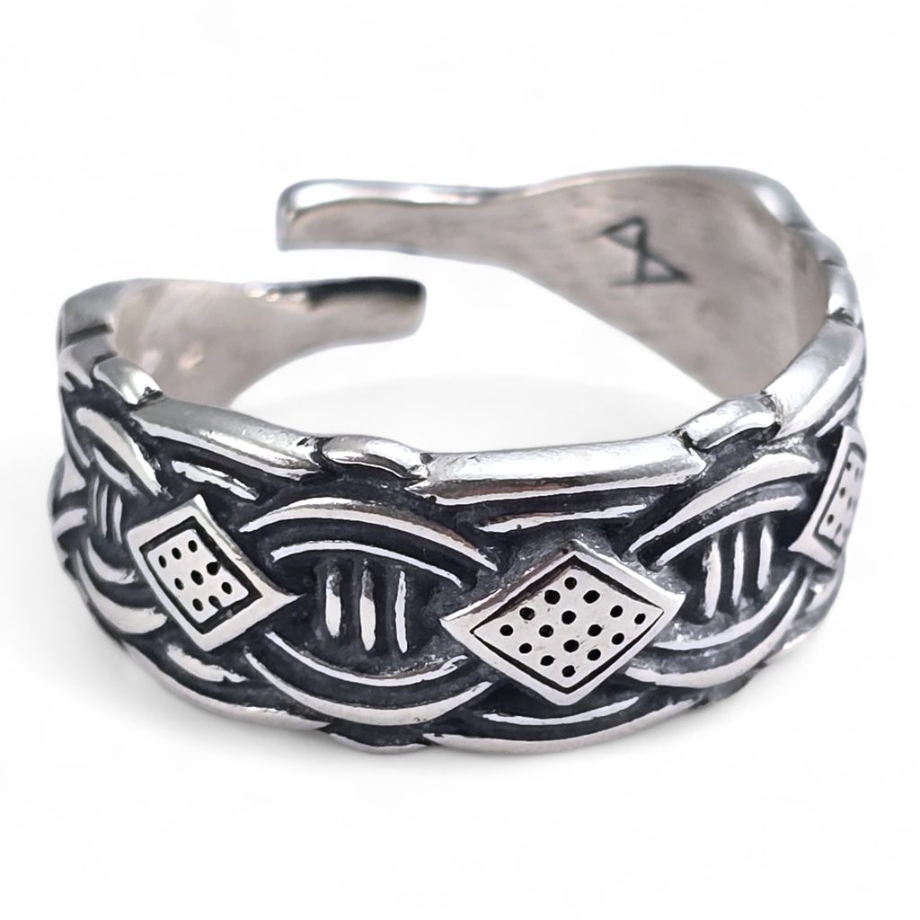 Vikingský stříbrný prsten ve stylu Borre, detailní zpracování, solidní váha šperku a nastavitelnost (v rozmezí 1.8 - 2.3 cm). Vikingové se moc rádi zdobili, Vy můžete také.