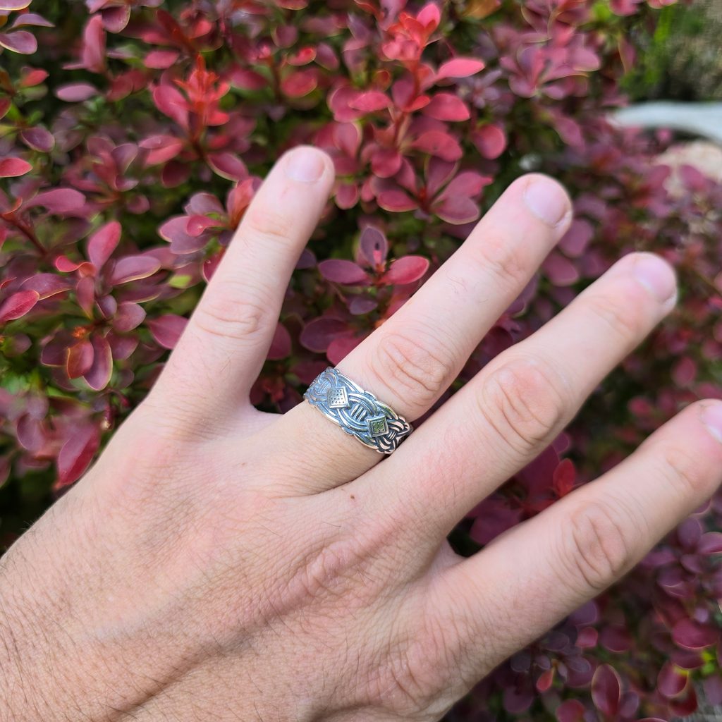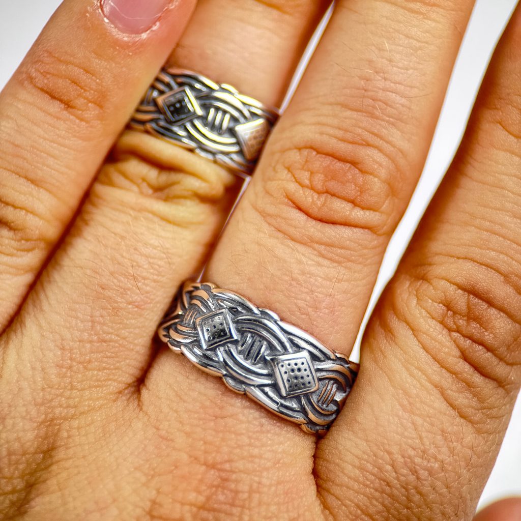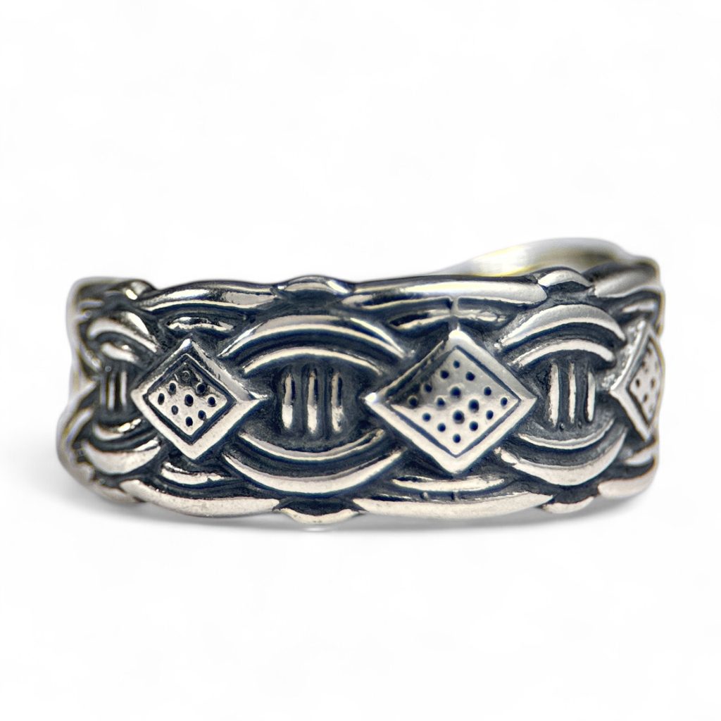 Vikingský stříbrný prsten ve stylu Borre, detailní zpracování, solidní váha šperku a nastavitelnost (v rozmezí 1.8 - 2.3 cm). Vikingové se moc rádi zdobili, Vy můžete také.
