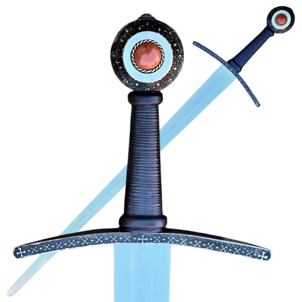 Špičkové středověké meče po několika letech vyvinuté a vyrobené v naší kovárně vyslyšely hlasy šermířů po funkčních replikách, velmi odolných při historickém šermu. Mají Full-Tang konstrukci, která se osvědčila nejvíce. U těchto mečů čepel přechází v jednom kuse přes rukojeť do hlavice na jejíž povrchu je roznýtována. Odpadá zde tedy svařování mosazí a teplotní ovlivňování. Čepel má tedy velmi dobré vlastnosti po celé své délce.