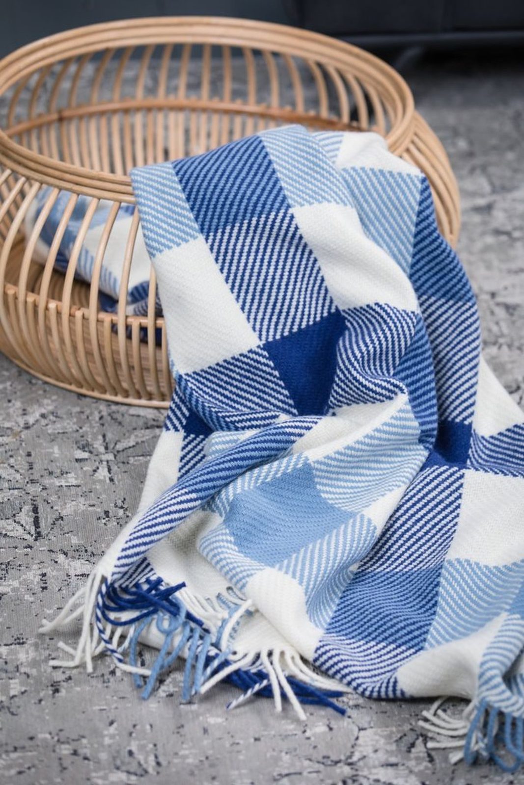 VINTAGE DUBLIN, vlněná deka, bílá a modrá kostka