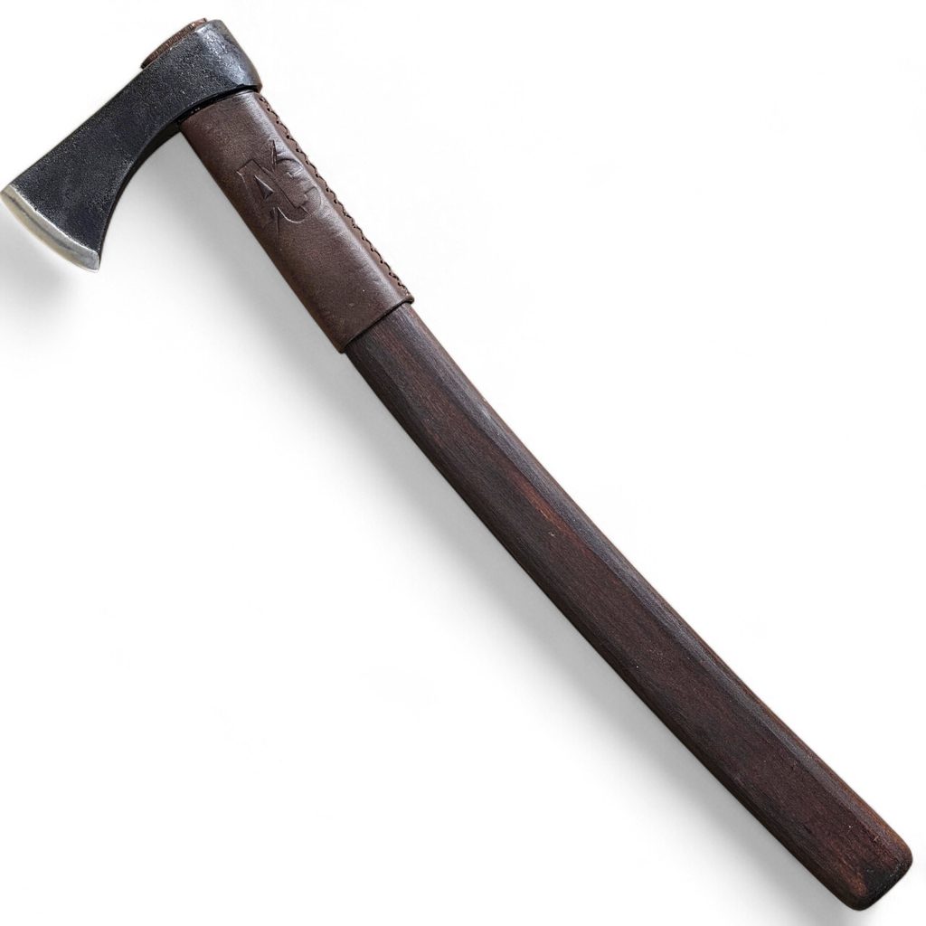 Vrhací sekera - tzv. francisca. Vyrobena z jednoho kusu kované oceli, sekera je ostrá a kalená.