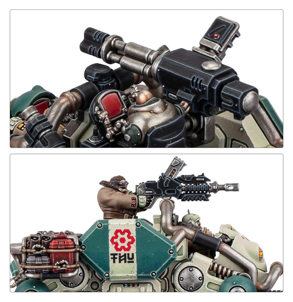 Tato vícečásťová plastová stavebnice umožňuje sestavit Kapricus Defender, rychlé vozidlo palebné podpory pro armády Leagues of Votann ve hrách Warhammer 40,000.