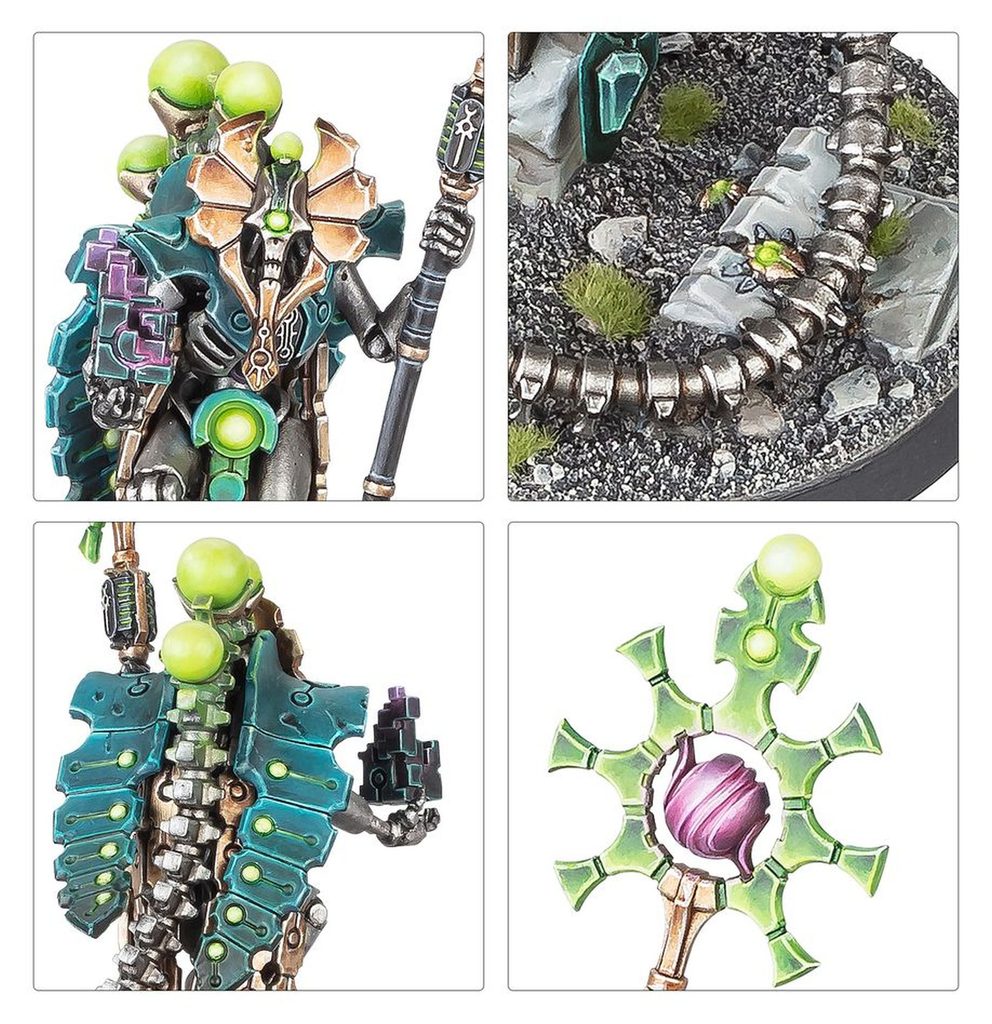 Tato vícedílná plastová stavebnice umožňuje sestavit Orikan the Diviner pro armády Nekronů ve hře Warhammer 40,000.