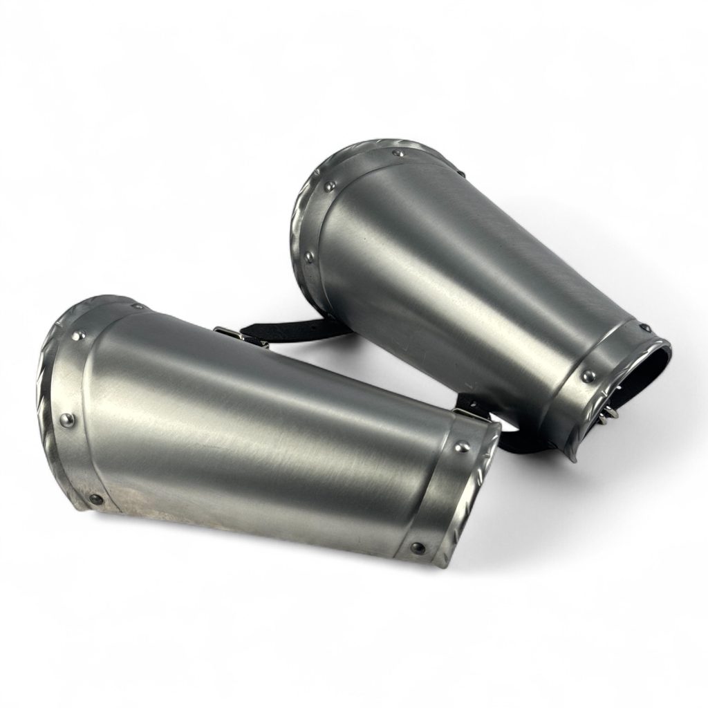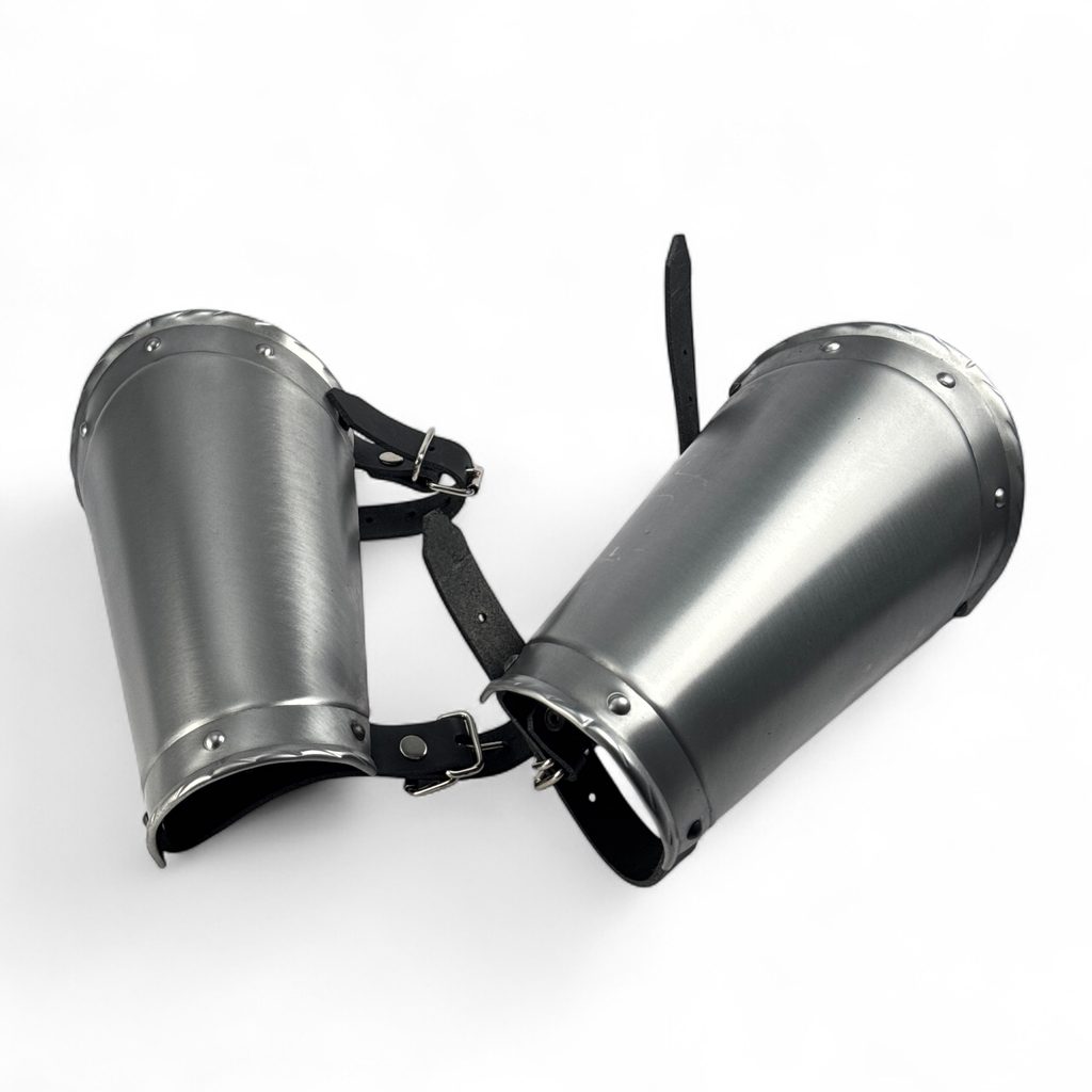 1 - 1,3 mm silné a šikovné železné věcičky, které mohou zabránit tomu, aby meč soupeře nadělal z Vašeho předloktí směs textilu, kůže, masa, krve a kostního morku :) Délka cca 22 cm. Cena za pár.