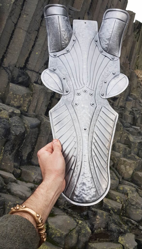 Dekorace do pokoje, stáje či stodoly. Ručně vyráběná plechová maska pro koně ve stylu středověké zbroje.