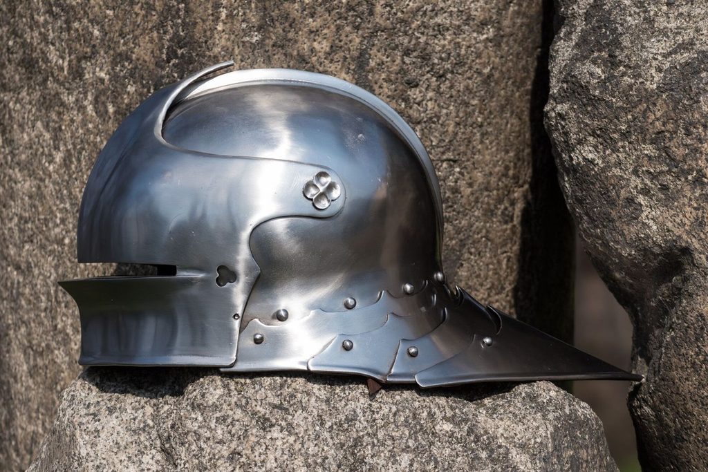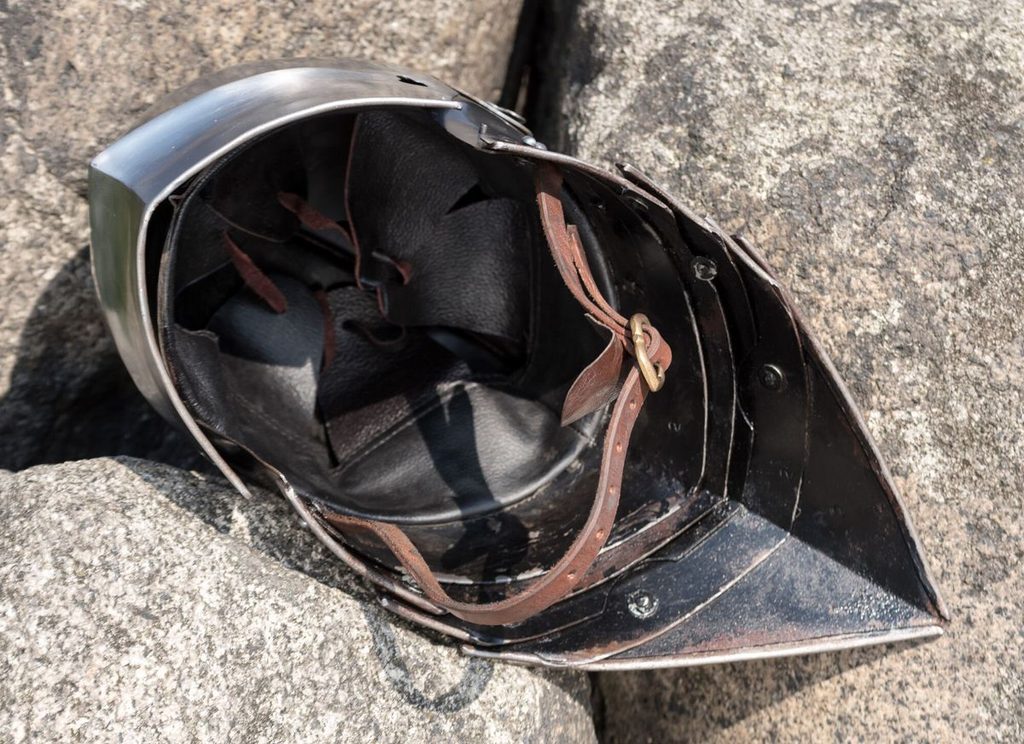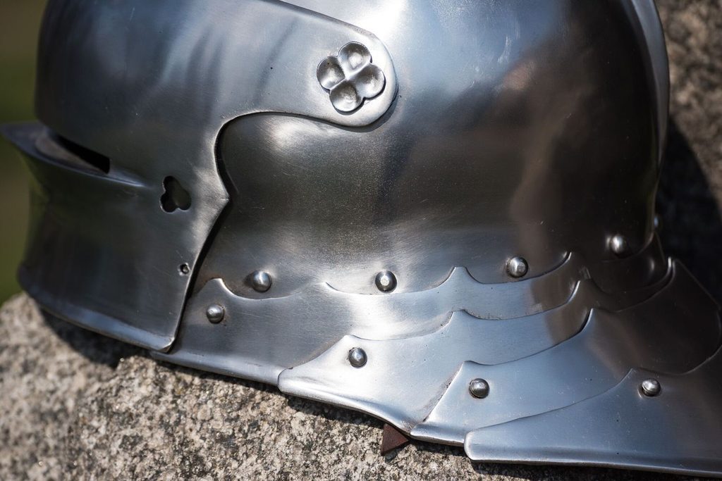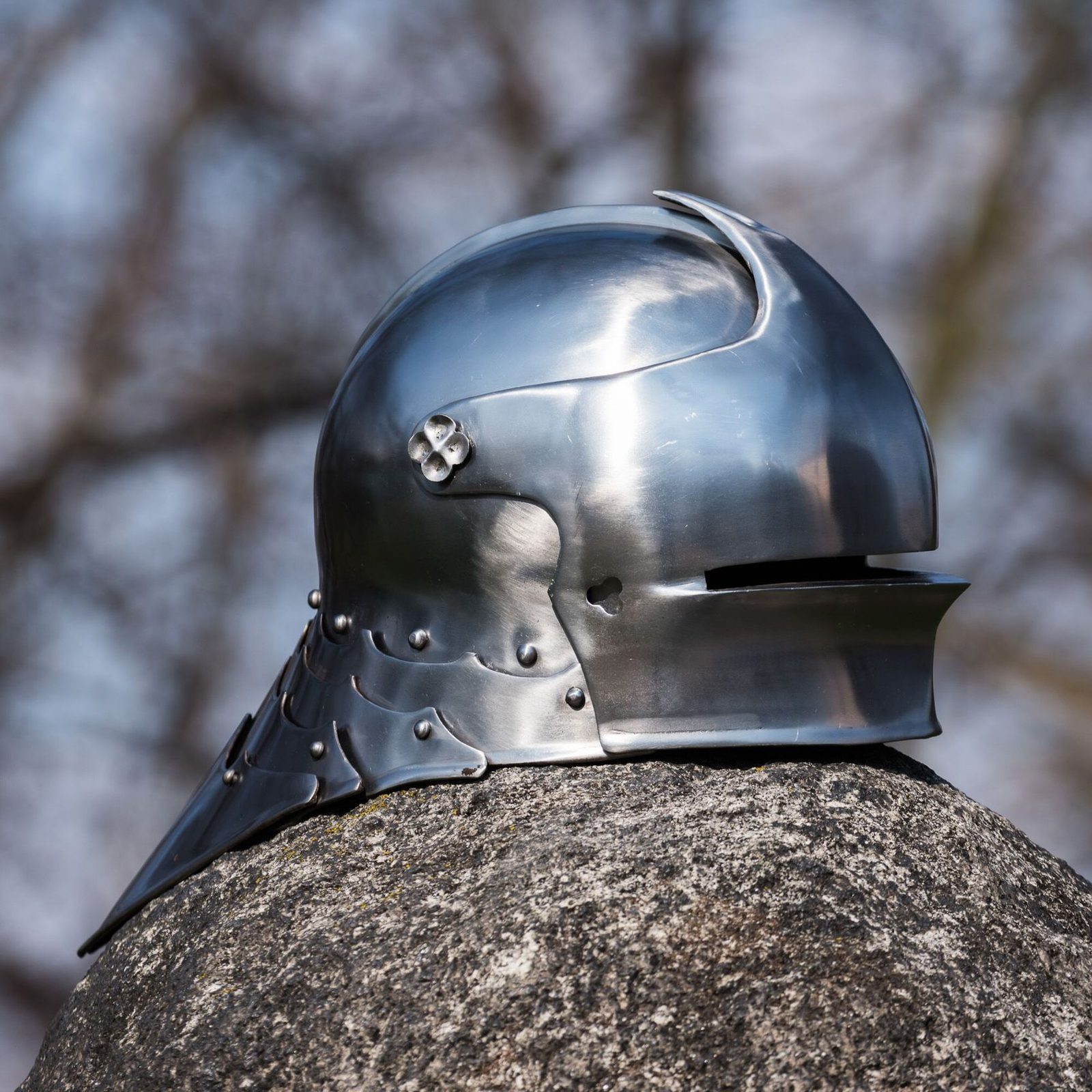 Leštěný německý šalíř z oceli. Jedná se o sběratelskou a divadelní přilbu, nepoužívejte ji do železných bitev.