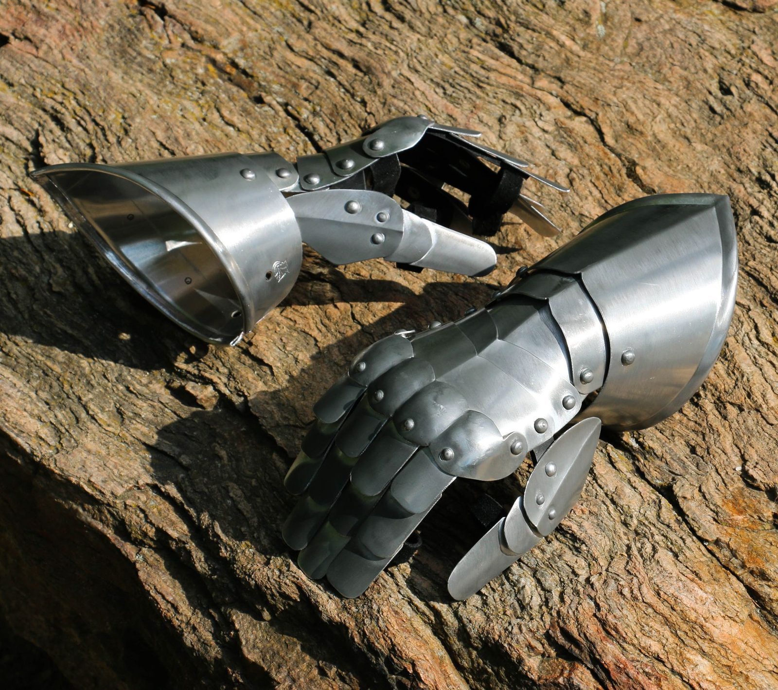 Dětské rukavice vyrobeny z odlehčeného kovu (dural). Česká produkce.