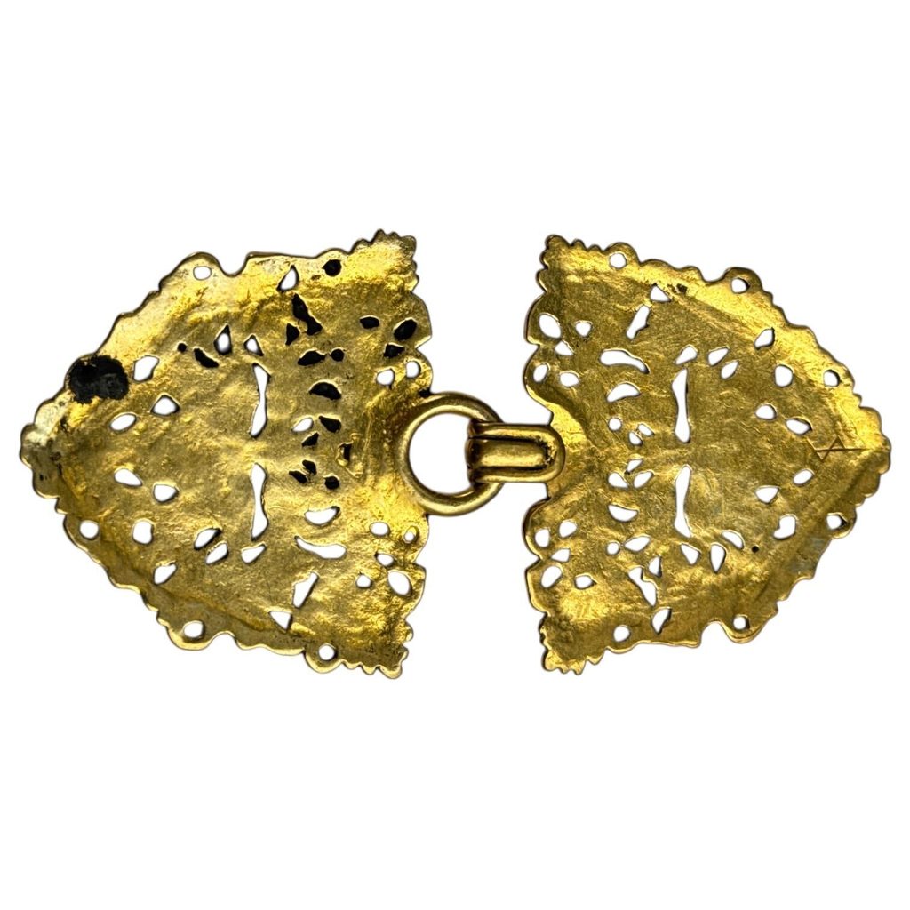 Středověká spona na plášť zobrazuje motiv tzv. „Zeleného muže“, který byl obzvláště typický pro umění vrcholné a pozdní gotiky a v sobě nesl prvky pohanské symboliky.