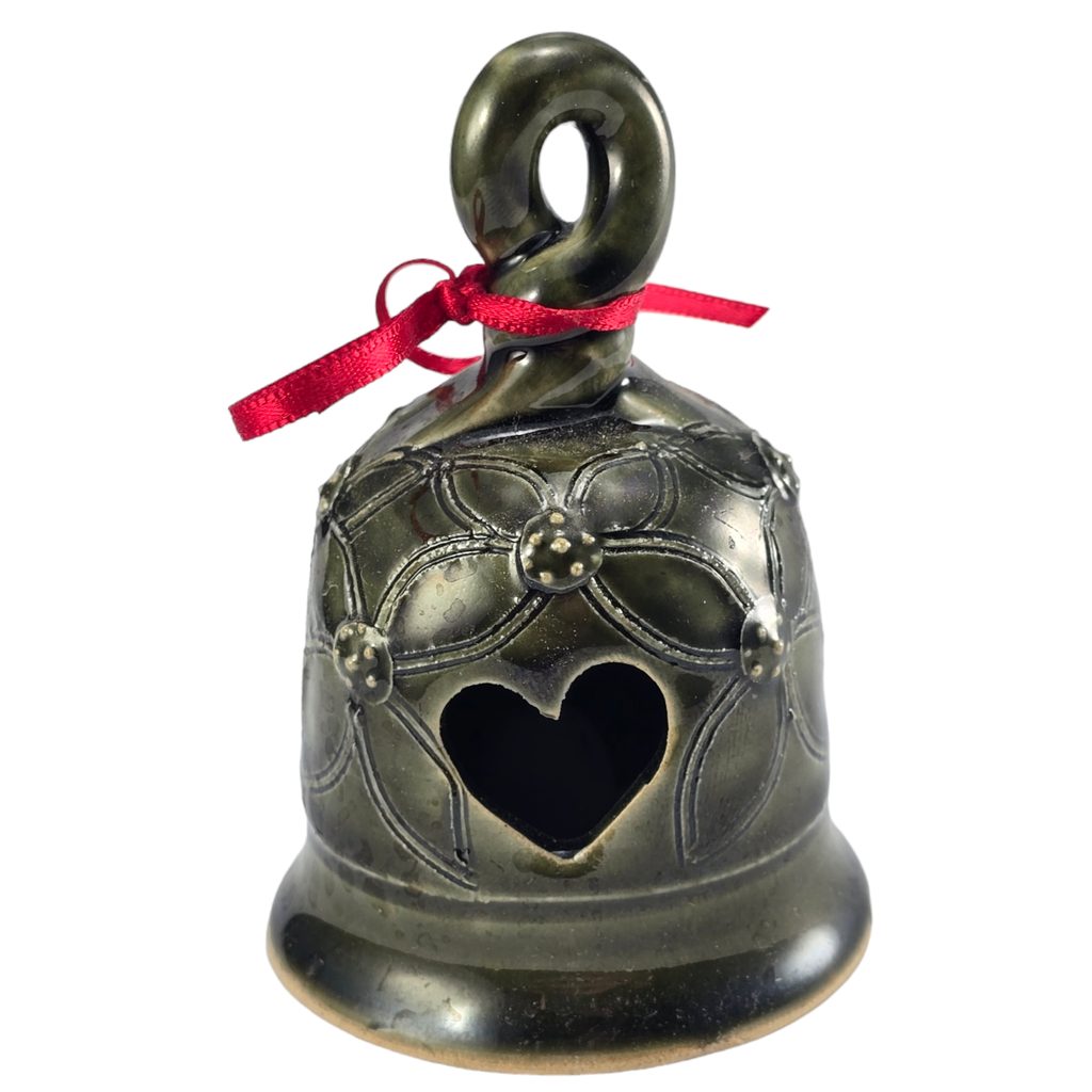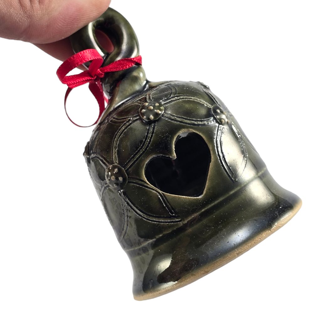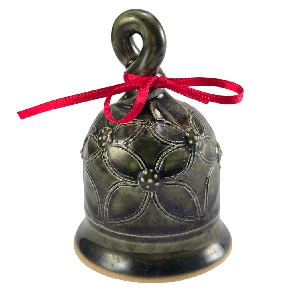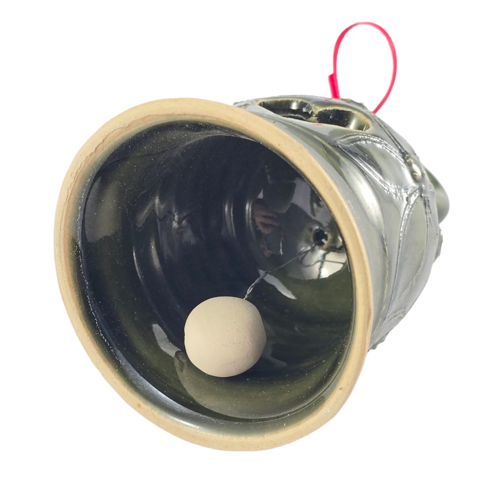 Keramický zvonek zdobený malinovým vzorem a zelenou glazurou. Uvnitř má keramické srdce. Každý výrobek je originál. Byl ručně a s láskou vytvořen, jeho zdobení i tvar se mohou částečně lišit od fotografie.