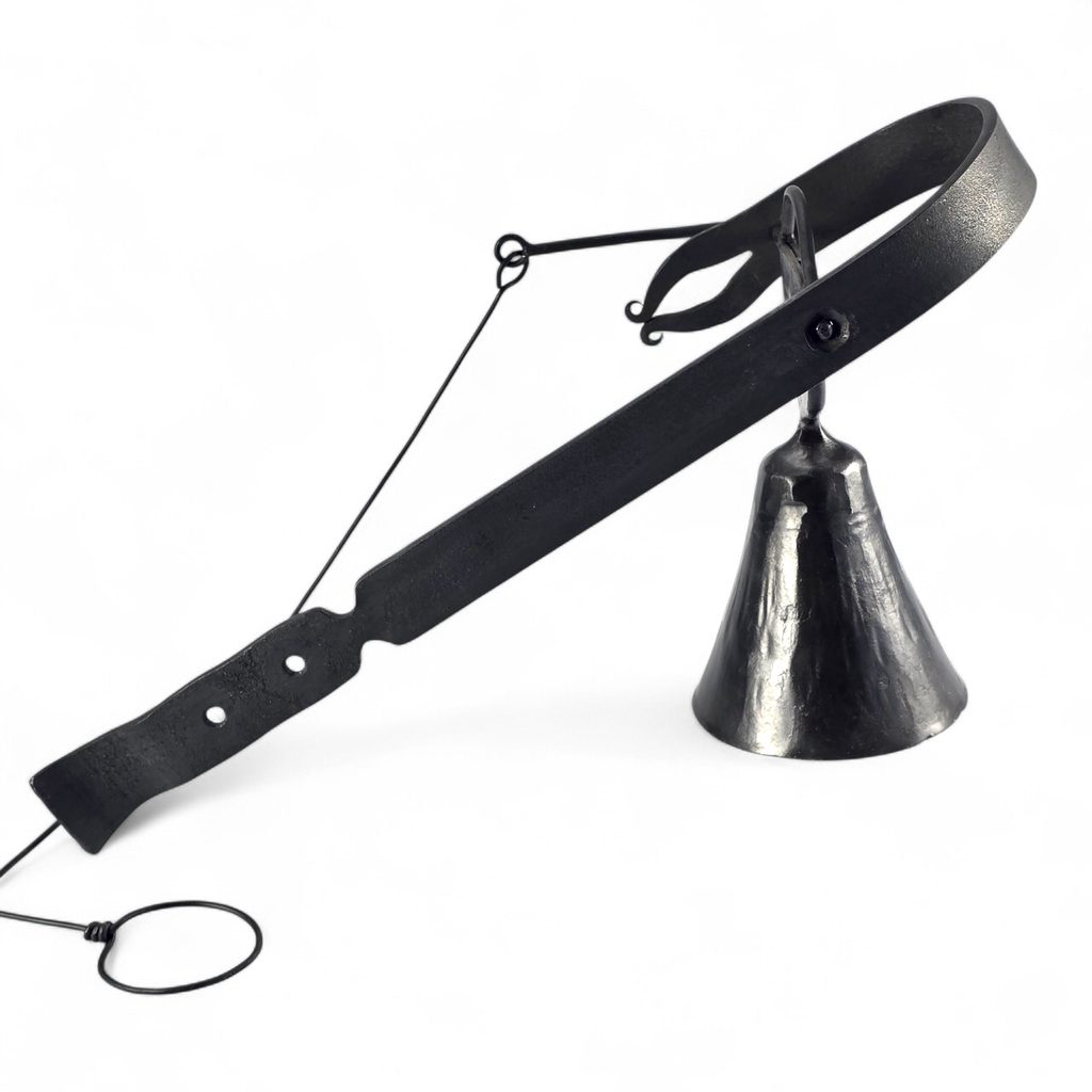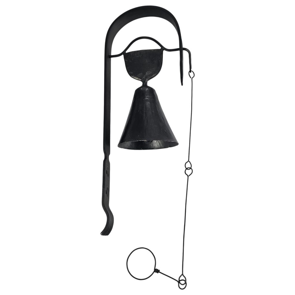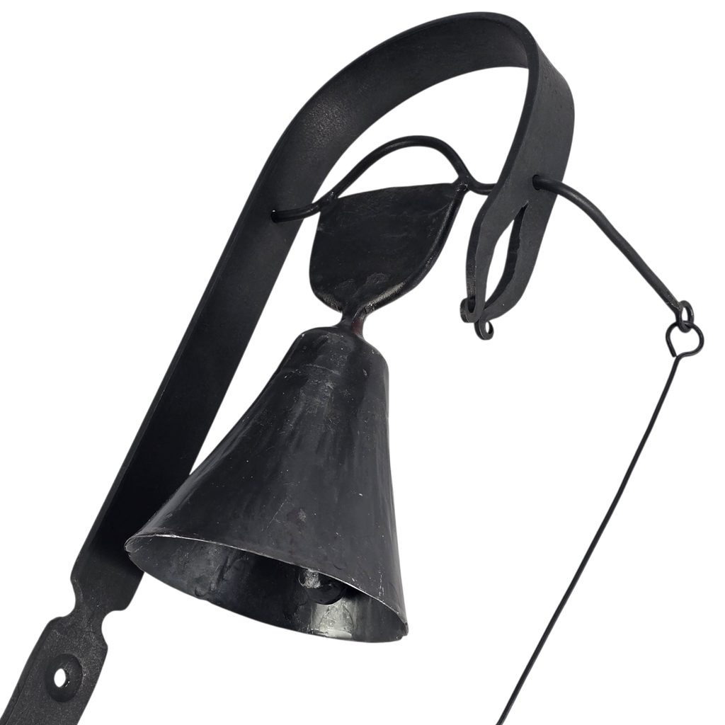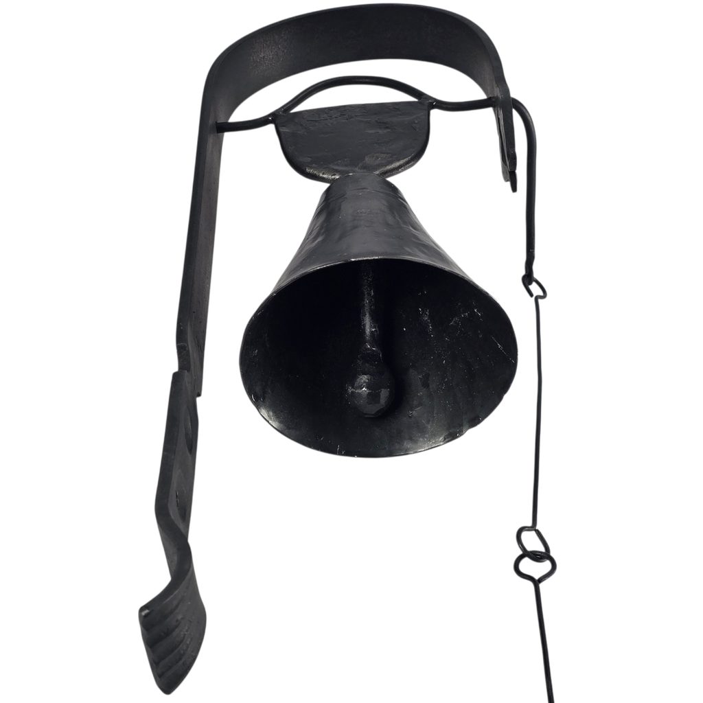 Tahle zvonička není žádná moderní dekorace z továrny. Je to kus poctivé kovářské práce, vyrobený ručně českými kováři. Stačí zatáhnout za kroužek a zvon jasně zazní.