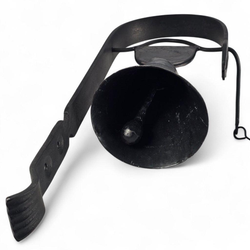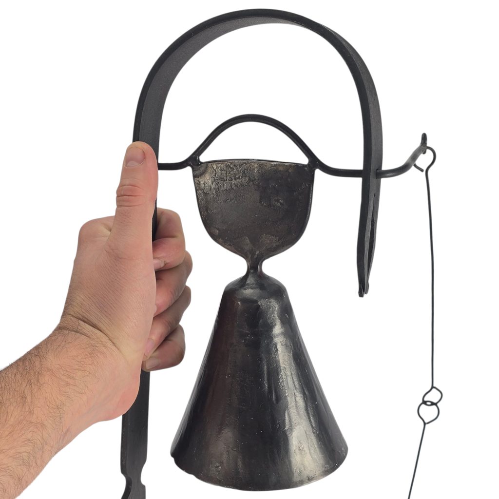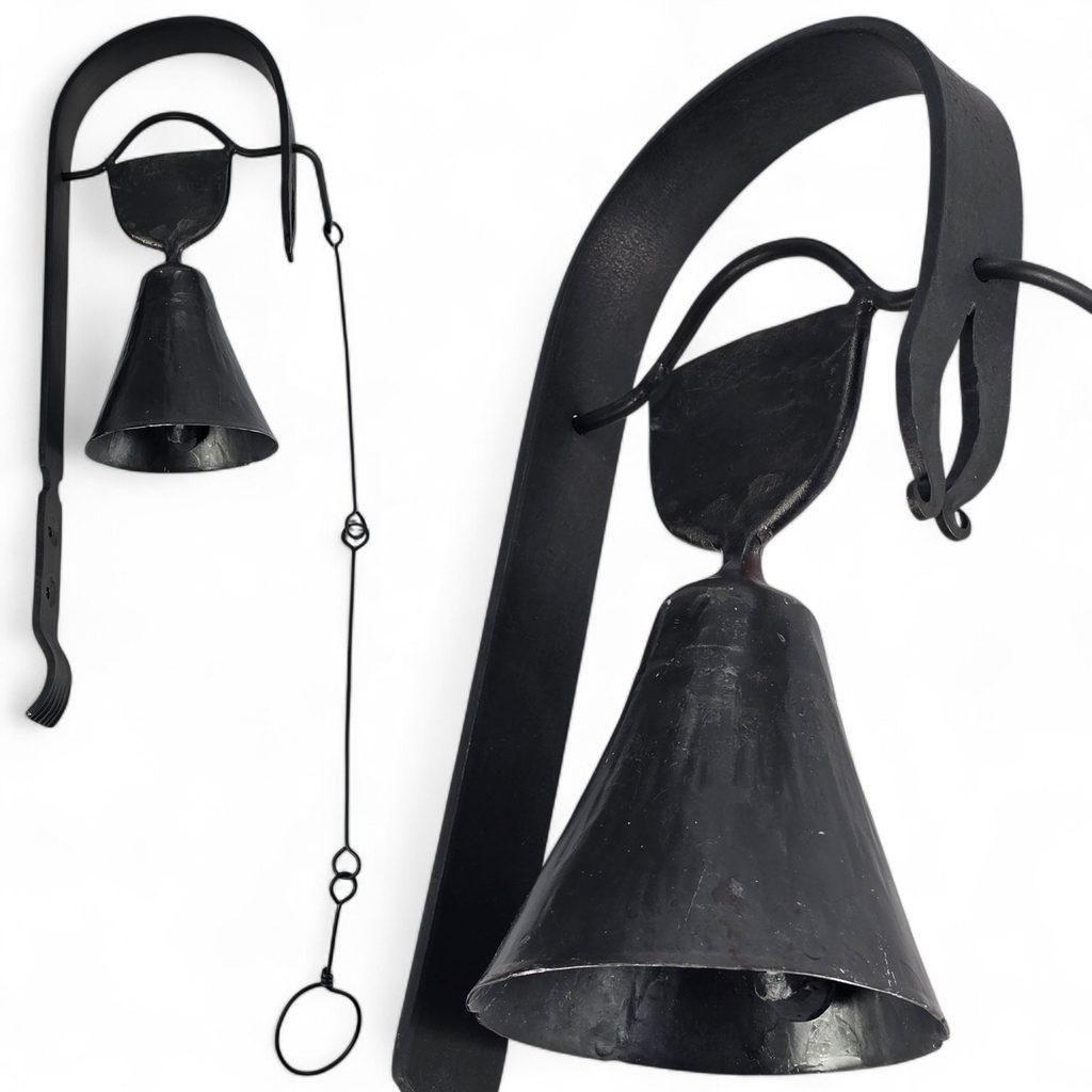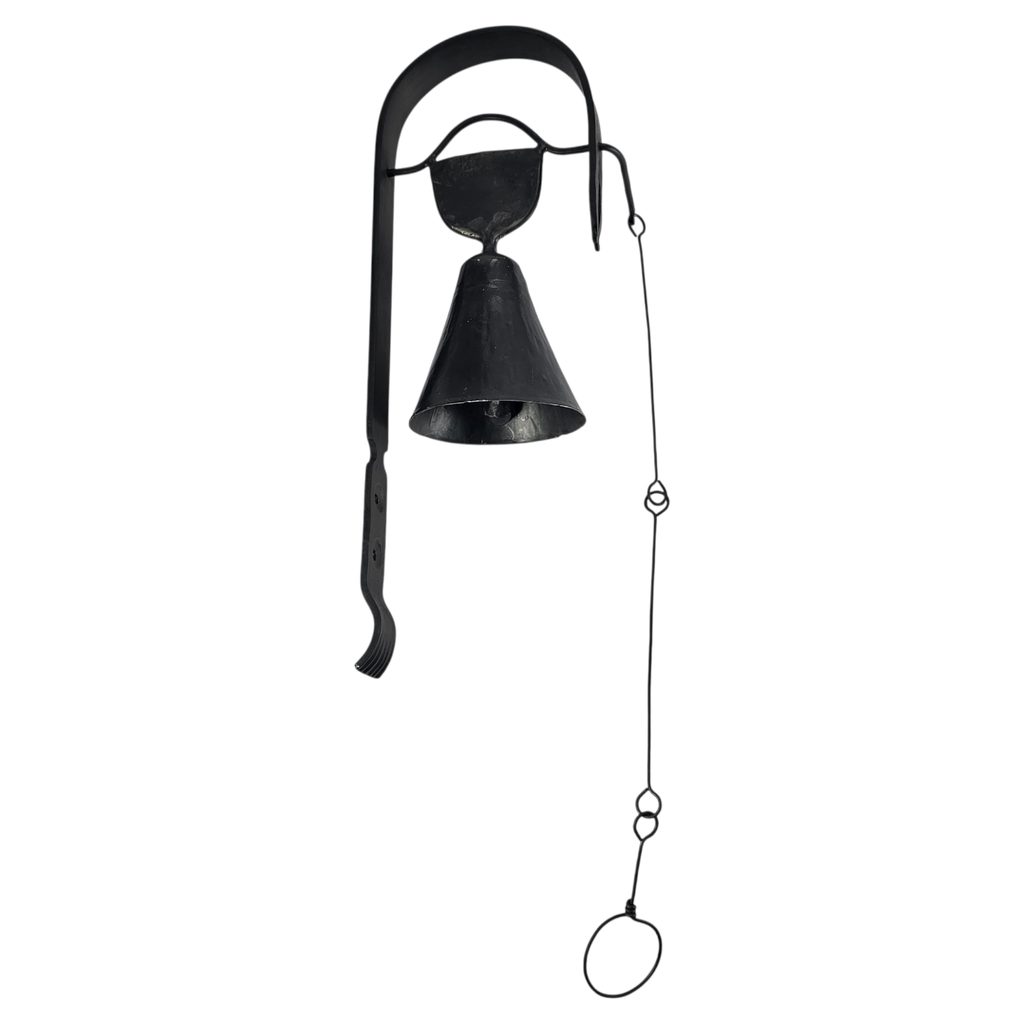 Tahle zvonička není žádná moderní dekorace z továrny. Je to kus poctivé kovářské práce, vyrobený ručně českými kováři. Stačí zatáhnout za kroužek a zvon jasně zazní.